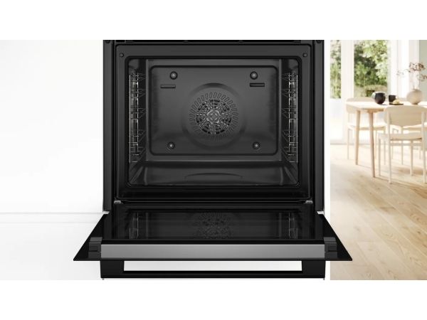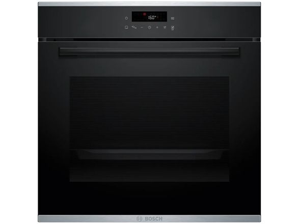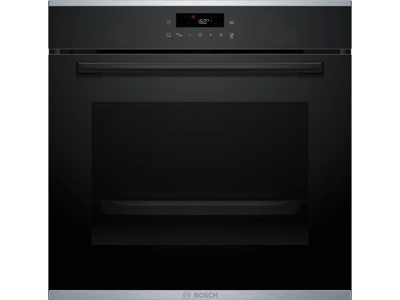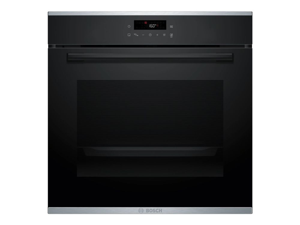 Experience precision cooking with the Bosch Serie | 4 electric oven, designed for efficiency and performance. This large 71-liter capacity oven features a drop-down door and an LED display, allowing for easy operation and access. With an array of cooking programs including hot air, pizza, and air fry, culinary creativity is at your fingertips. The oven offers seven heating modes and multiple automatic cooking functions to ensure optimal results for any dish. The Bosch HBA272BB3 is built with energy efficiency in mind, rated Class A+ for energy consumption. It also features pyrolytic self-cleaning technology, making maintenance straightforward. Enjoy the convenience of a programmable timer and touch controls, while the black glass door adds a sleek aesthetic to any kitchen.