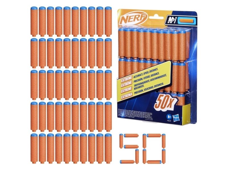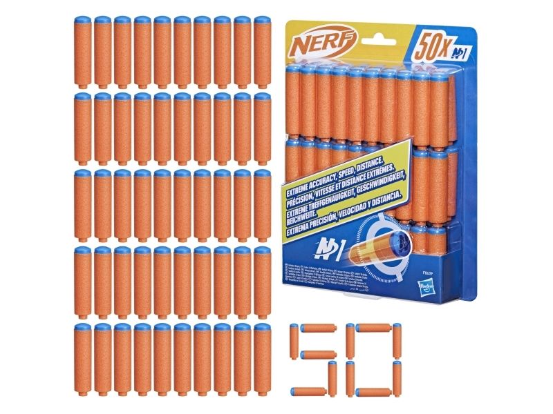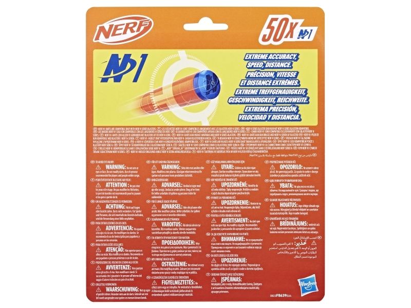 Nerf N1 Refill 50 Mit den High-Perfomance Dart-Blastern aus der Nerf N Series und Nerf N1 Darts bringt die Marke Nerf das Battle auf das nächste Level. Sind Erfahrungen als Nerf Spieler bereits vorhanden? Dann bieten die Blaster und Darts beim Indoor- und Outdoor-Battle den entscheidenden Vorteil. Von den Entwicklern des Schaumstoffdarts entfesselt die Marke Nerf die nächste Revolution beim Dart-Blasting, denn die Nerf N Series N1 Darts liefern EXTREME TREFFGENAUIGKEIT, GESCHWINDIGKEIT und REICHWEITE! Mit den offiziellen Nerf N1 Darts können die Fans pulsierenden Spielspaß erleben, wenn sie sich mit Familie und Freunden zu Nerf Wettbewerben treffen. Es ist ein spannender Spielspaß, wenn die Darts durch die Luft zischen und mit höchster Treffgenauigkeit weit fliegen und die Fans im Battle Erfolge erzielen. Dieser Pack enthält 50 Nerf N Series N1 Darts, die nur mit Nerf N Series Blastern kompatibel sind. Ein Augenschutz wird empfohlen (nicht enthalten). Blaster separat erhältlich, je nach Verfügbarkeit. NERF und HASBRO sowie alle dazugehörigen Marken und Logos sind Marken von Hasbro, Inc.