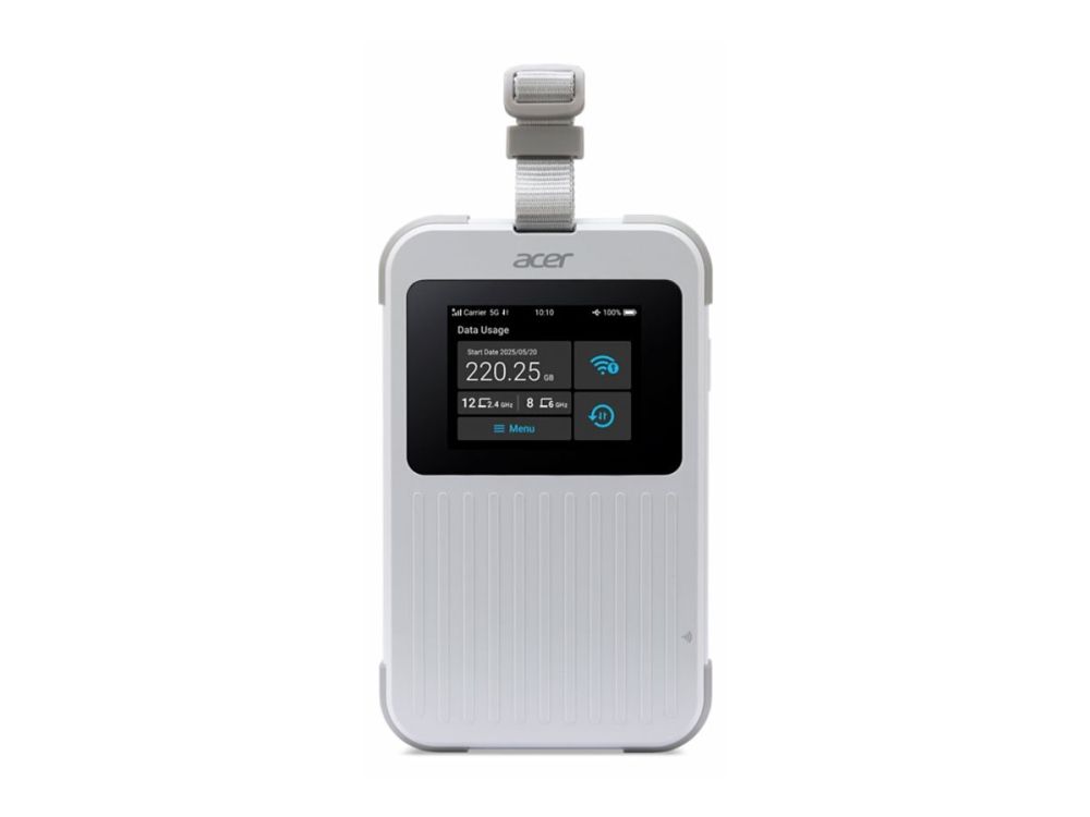 Acer Connect M6E with 20GB. Wi-Fi band: Dual-band (2.4GHz + 5GHz or 2.4GHz + 6GHz), Top Wi-Fi standard: Wi-Fi 6E (802.11ax), Wi-Fi standards: 802.11a, 802.11b, 802.11g, Wi-Fi 4 (802.11n), Wi-Fi 5 (802.11ac), Wi-Fi 6E (802.11ax). Mobile network generation: 5G, 4G standard: LTE, 5G standard: NR. Product type: Portable router, International Protection (IP) code: IP68. Antenna design: Internal, Antenna type: 2x2. Processor frequency: 2500 MHz, Internal memory: 4096 MB