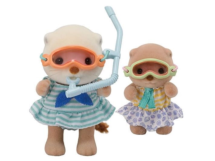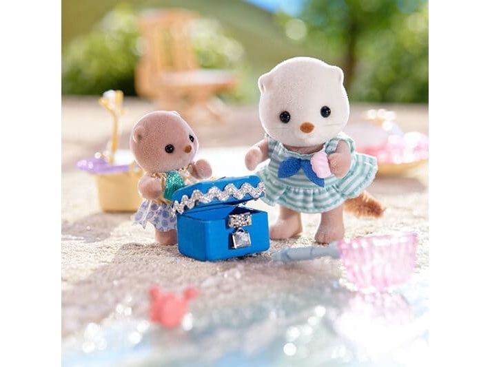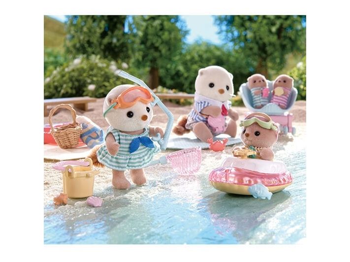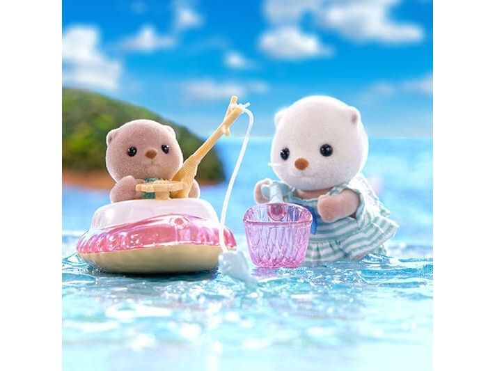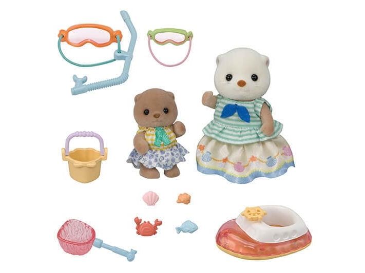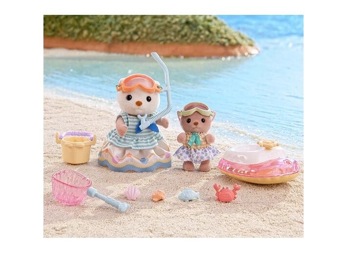 This set includes the Sea Otter girl Marina and baby Manon with items for playing in the sea. The Sea Otter family are adorable round characters. The girl´s arms, head and legs are movable, clothes can be dressed and undressed. The skin is soft. With a baby boat, snorkeling gear, fishing net and more, there are lots of ways for the sisters to have fun in the sea! The baby can ride in the baby boat and the girl can wear the snorkeling gear. The Sea Otter girl's skirt can be taken off to turn her dress into a swimsuit. The sisters can use the fishing net to catch shellfish, a fish and a crab. Combine with the 5803 Sea Otter Family (sold separately) for even more fun imaginative playtime with the whole family! Suitable for ages 3+.