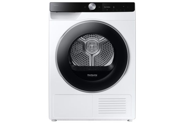 Brand- Samsung. Model- DV90DG6845LKU4 . Width- 60 cm. Depth- 60 cm. Height- 85 cm. Colour- White. Weight- 50 kg. Drum capacity- 9 kg. Energy Efficiency Class- A. Type of drying- Condensing with heat pump. Drying efficiency class- B. Number of applications- 13. Noise level- 65 - 65dB. Control- Mechanical, Sensoric. Screen- Yes. Mandatory warranty- 24 mo.