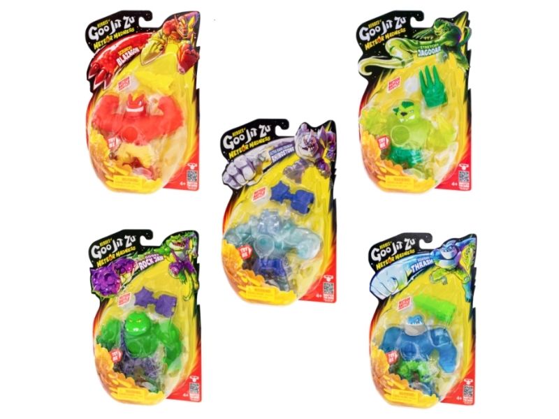 Stretched to the Extreme and heading straight for you! Brace yourself for a meteoric blitz with the all-new Heroes of Goo Jit Zu Meteor Madness range! There are 5 epic Meteor Madness figures to collect, each with a unique goo-filled core that kids will love to squish and stretch! Join Blazagon, Thrash, Jagooar, and Ultra Rare Hero Rhinostone as they take on villains in a meteor-powered clash of strength and skill. Get ready for next-level battles, unstoppable heroes, and high-stretch excitement!