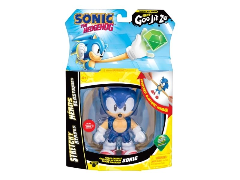 Look who's back with the Heroes of Goo Jit Zu - Sonic the Hedgehog! But now he's not just supersonic and super stretchy, he has become Chaos Emerald Sonic! Squeeze Sonic's body to discover and reveal a powerful Chaos Emerald within his Goo! Grab him by his limbs and stretch out his arms and legs. Sonic stands at over 10 cm tall. Heroes of Goo Jit Zu are the new gooey, stretchy way to play with your favorite toy characters - with no mess. Discover a new way to play and help Chaos Emerald Sonic save the day!
