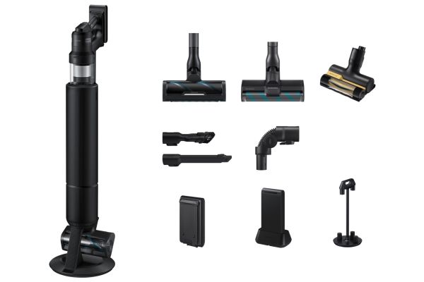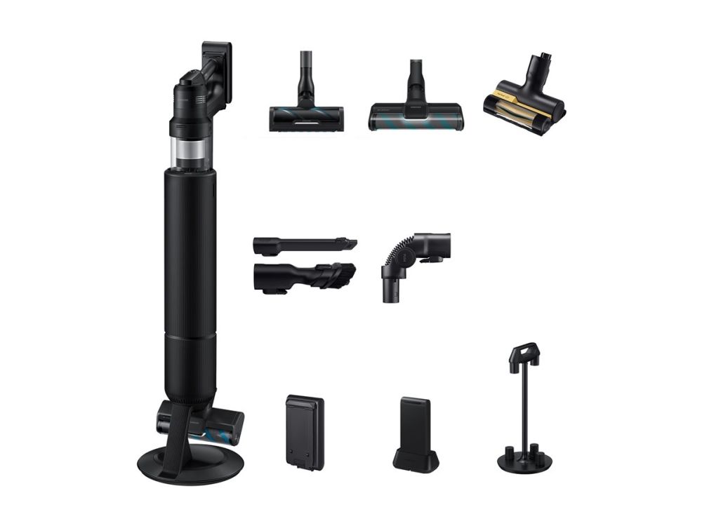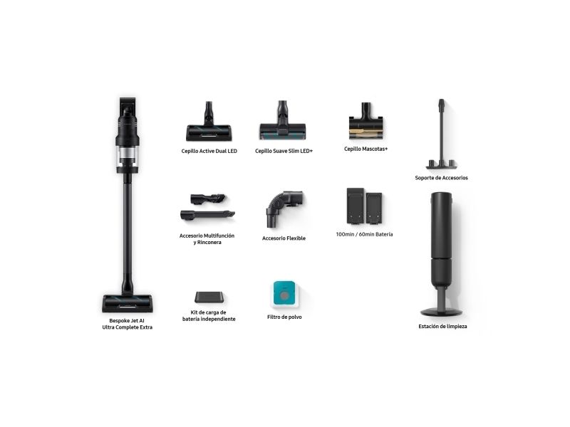 The Samsung BESPOKE AI Jet Ultra Complete Extra vacuum cleaner combines advanced features with user-friendly design for effective cleaning. Equipped with a 400 W maximum suction power and a HEPA filter, it captures fine dust and allergens, making it suitable for homes with pets. The bagless design and 0.5 liter dust capacity enable easy maintenance, while the adjustable suction and removable brush roll provide versatility for various cleaning tasks. This model features an inverter motor and HexaJet technology for powerful performance, complemented by the AI cleaning mode 2.0 that enhances efficiency. The LCD display keeps users informed with battery and power level indicators. Its cordless design allows for maximum mobility, and with a 160-minute operating autonomy, it accommodates larger cleaning jobs without interruption. Additionally, it is IoT-compatible and can be operated via Bixby, making it a choice for modern households.