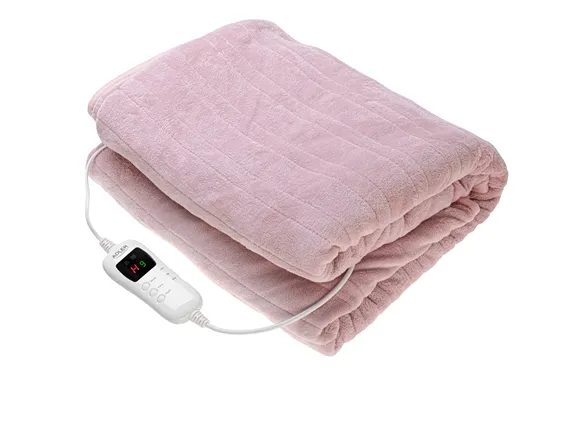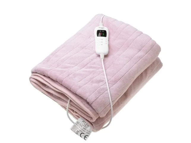 Nom. Power: 110W. Size: (H:W)160x180cm. Washable in 30 C temp. Detachable power cord with LCD controller. Timer: 1-9 hours, 7 heating levels, plus HIGH and LOW modes, Overheat protection. Machine washable in 30°C temperature. Fabric: super soft double-faced coral fleece