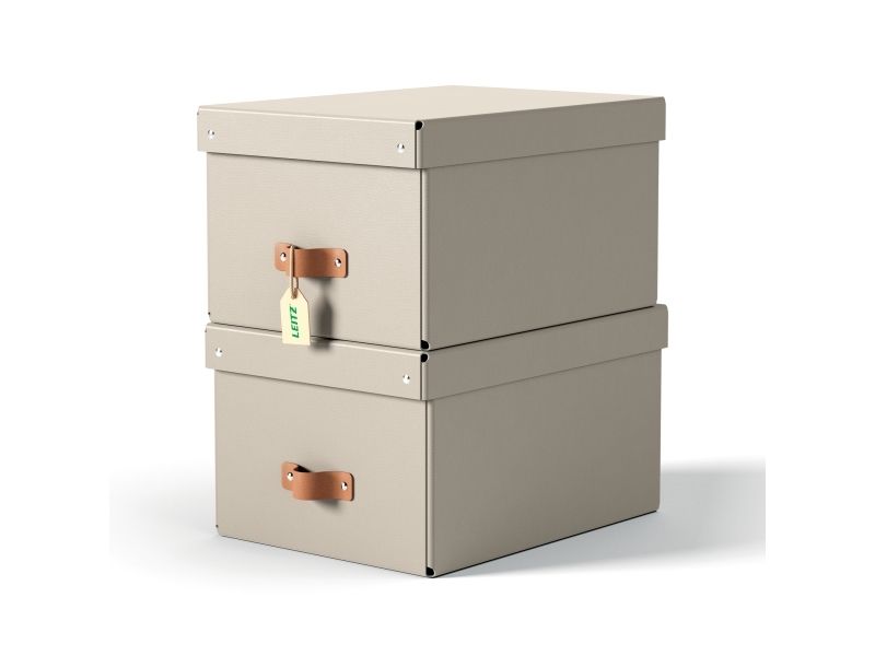 Stay organised and feel good by using Leitz Puro medium cardboard storage boxes with lids to create instant storage and declutter your spaces. This set of two decorative storage boxes with 17 litres capacity will help keep your home and office organised while adding style to your storage. These high quality boxes are stackable to save space and ideal to store A4 documents, laptops, toys, shoes and crafting materials.