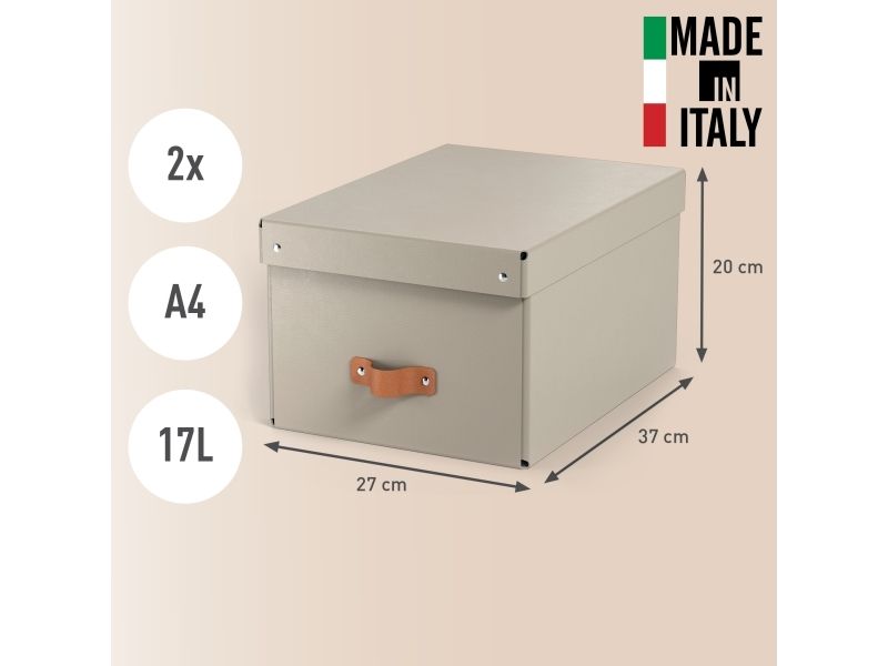 The selection of earthy colours - inspired by the purity and simplicity of nature - will perfectly complement your interiors, bringing a sense of calm to your rooms and offices. Each storage box features a leather pull handle making them easy to retrieve from shelves and storage units. Made in Italy. Feel good with Leitz.Leitz Puro Storage Box with lid, medium, 17L, 100% recycled card, pack of 2. Product colour: Grey, Material: Carton. Volume: 17 L, Width: 270 mm, Depth: 370 mm. Country of origin: Italy, Quantity per pack: 2 pc(s)