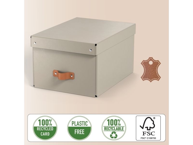 Leitz shelf storage boxes come supplied flat-packed and are quick and easy to assemble with no tools required. Kind to the planet, these stackable storage boxes are made from 100% recycled FSC certified cardboard and can be fully dismantled for 100% recycling after use.