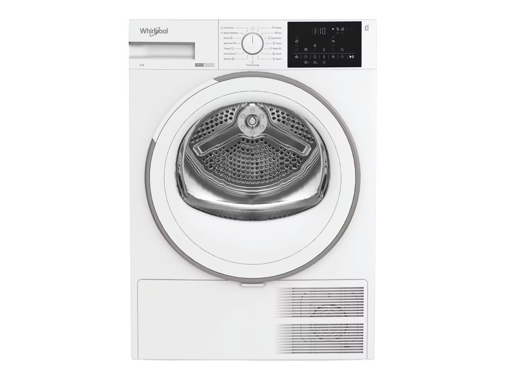 The Whirlpool SD 9BD W EE electric dryer features a spacious 9 kg capacity, ideal for handling large loads efficiently. Equipped with a heat pump drying system, this dryer helps save energy while providing optimal drying results. Users can choose from multiple drying programs including cottons, synthetics, sportswear, and specialized options like duvet and bedding to meet various fabric needs. With its advanced features, the dryer includes a moisture sensor for precise drying, an easy-to-use digital display, and a drum light for visibility during loading and unloading. Safety is prioritized with child security features, while an adjustable feet design ensures stability in various environments. This dryer also complies with relevant EU energy directives, making it a responsible choice for homes.