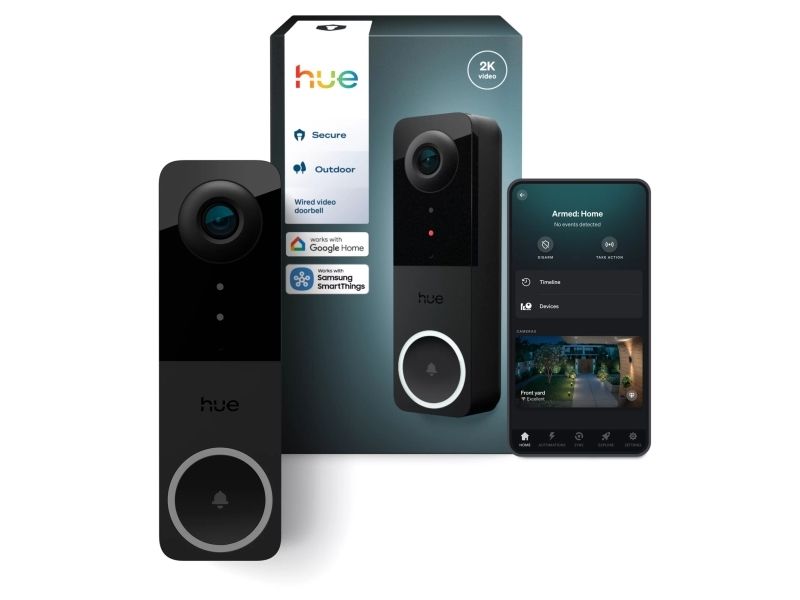 The Philips Hue doorbell camera is designed for outdoor environments, ensuring reliable performance in various weather conditions. With features like motion detection and two-way communication, it offers an effective solution for monitoring door entrances. The device is weatherproof, splash-proof, and dust-resistant, making it suitable for any climate. The integrated Starlight optical sensor allows for color night vision, enabling clear image capture even in low light levels. A 180° field of view provides comprehensive coverage. The camera supports 2K QHD video resolution for high-quality streaming and includes infrared LEDs for enhanced visibility at night.