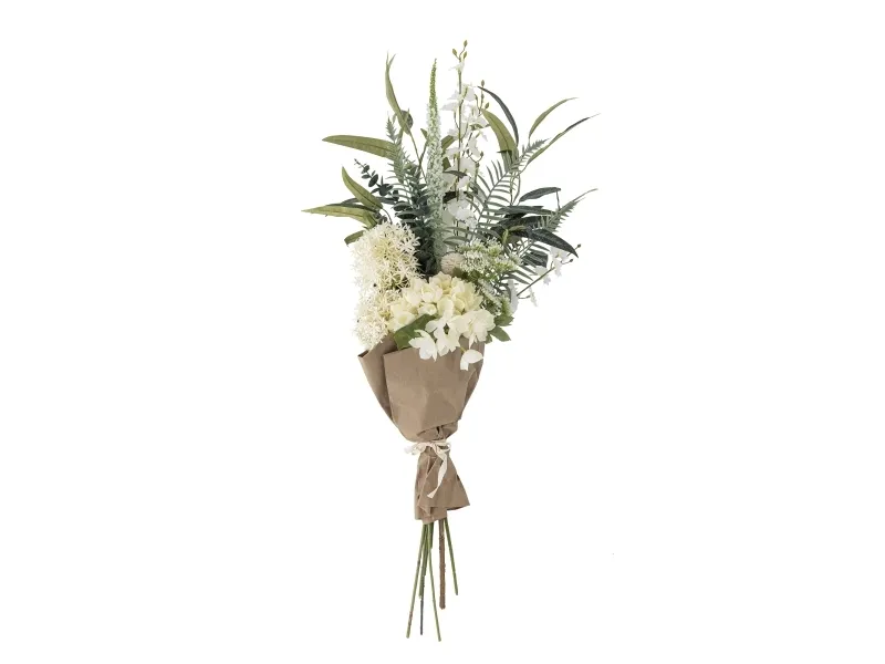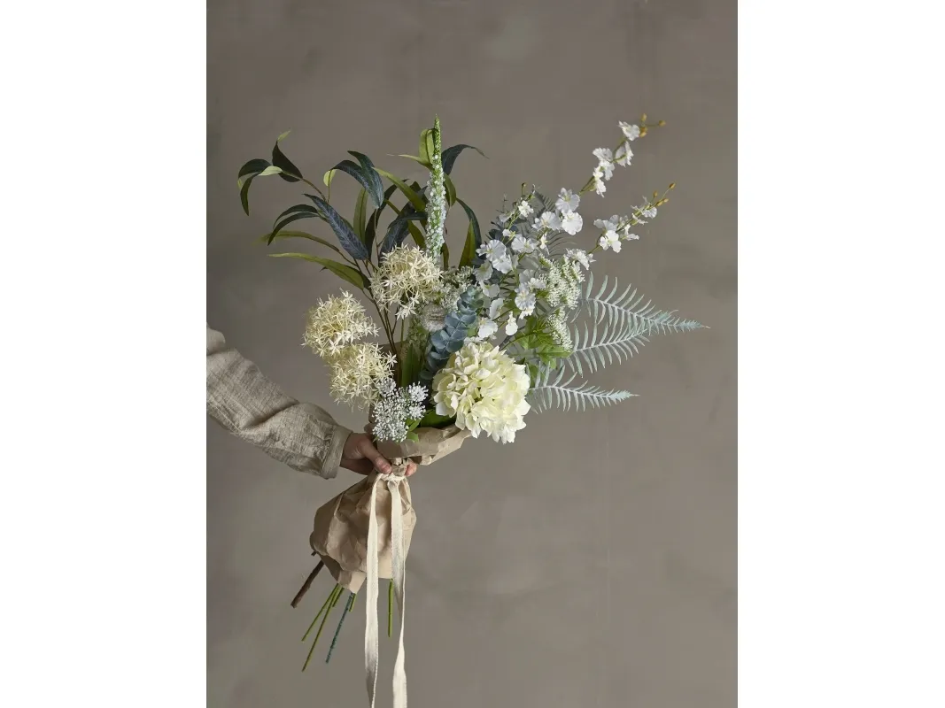 Symphony Künstlich Blumenstrauß von Bloomingville weckt ein Gefühl von Harmonie und Sanftheit, das an ein beruhigendes Orchesterstück erinnert. Es präsentiert eine zarte Anordnung von Blumenelementen in sanften Weißtönen, Cremes und subtilen Grüntönen, die eine visuelle Melodie weben, die die Sinne anspricht. Jeder Stiel trägt zur Gesamtschönheit des Bouquets bei und spiegelt die subtilen Kontraste einer Symphonie wider. Perfekt für ruhige und nachdenkliche Momente lädt die Anordnung zur Bewunderung der sanften Eleganz der Natur ein. Schneiden und formen Sie die Stiele vor dem Gebrauch, um das natürliche Aussehen des Bouquets hervorzuheben und passen Sie sie an Ihre persönliche Dekoration an. In Papier eingewickelt. Vase nicht enthalten.