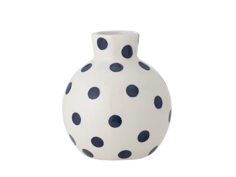 Die Fian Vase von Bloomingville, aus Keramik gefertigt, ist eine feine, kleine dekorative Vase. Sie hat handgemalte Punkte, sodass keine Vase der anderen gleicht. Stellen Sie die Vase auf Ihren Schreibtisch mit einem kleinen Stiel oder im Badezimmer in einer Gruppe anderer kleiner Vasen.
