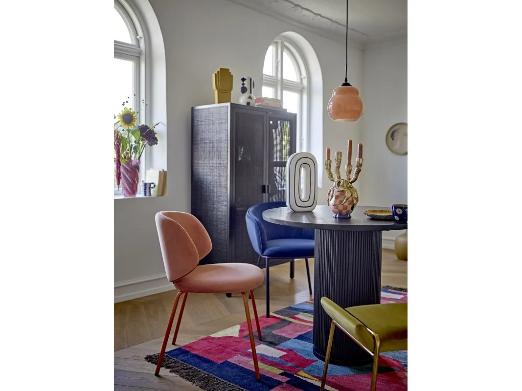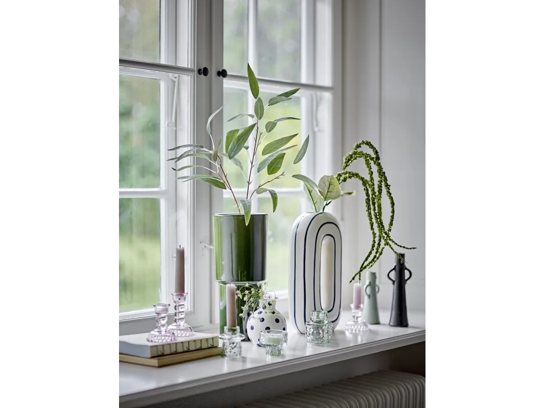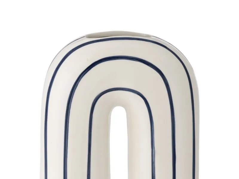 Die Mae Vase von Bloomingville ist aus Keramik gefertigt und mit handgemalten blauen Streifen versehen. Die Vase ist ideal, um schöne Blumen zu präsentieren oder als dekoratives Element für sich. Die handgemalten Details machen jede Vase einzigartig und sorgen für Variationen in der Farbintensität.