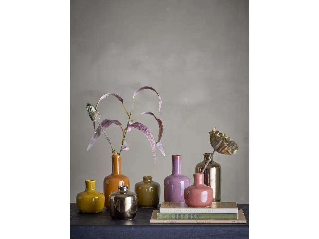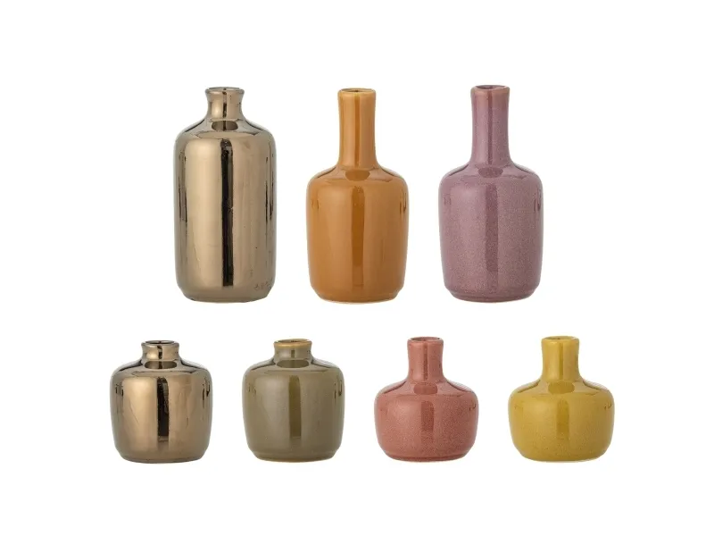 Die Maien Vase von Bloomingville ist ein Set aus sieben dekorativen kleinen Steingutvasen, jede mit ihrem eigenen einzigartigen Farbausdruck. Stellen Sie sie zusammen auf ein Regal für eine harmonische Präsentation oder verteilen Sie sie im ganzen Haus, um jedem Raum einen Farbtupfer zu verleihen.