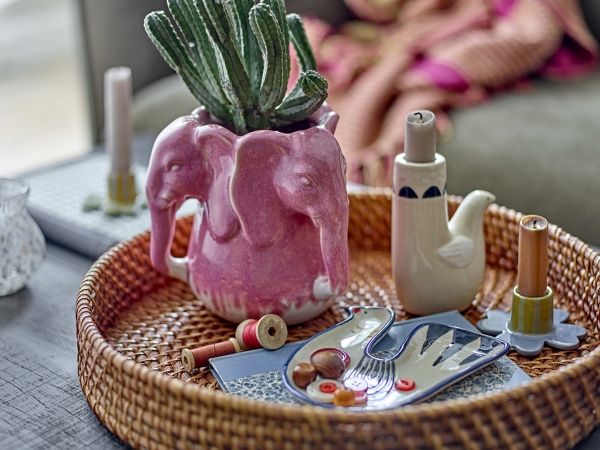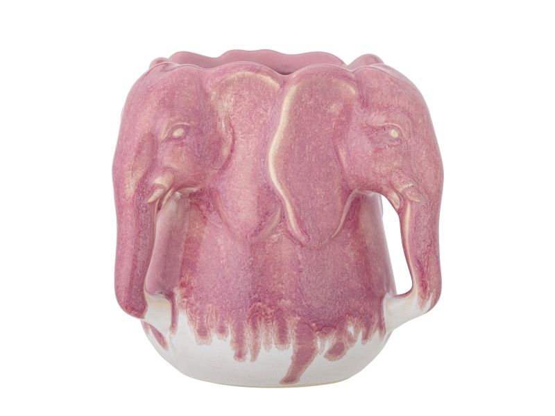 Die Pontus Vase von Bloomingville ist eine charakteristische Steingutvase, verziert mit rosa Elefanten, die der Einrichtung eine persönliche und spielerische Note verleihen. Sie ist perfekt, um das Wohnzimmer zu dekorieren, entweder als dekoratives Element oder gefüllt mit schönen Blumen. Aufgrund der Beschaffenheit der Glasur können leichte Farbabweichungen auftreten, was jede Vase einzigartig macht.