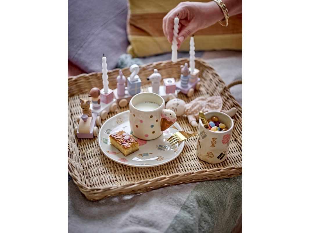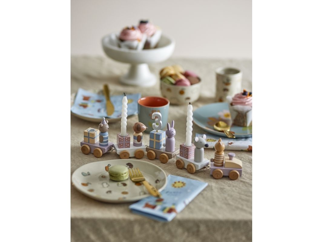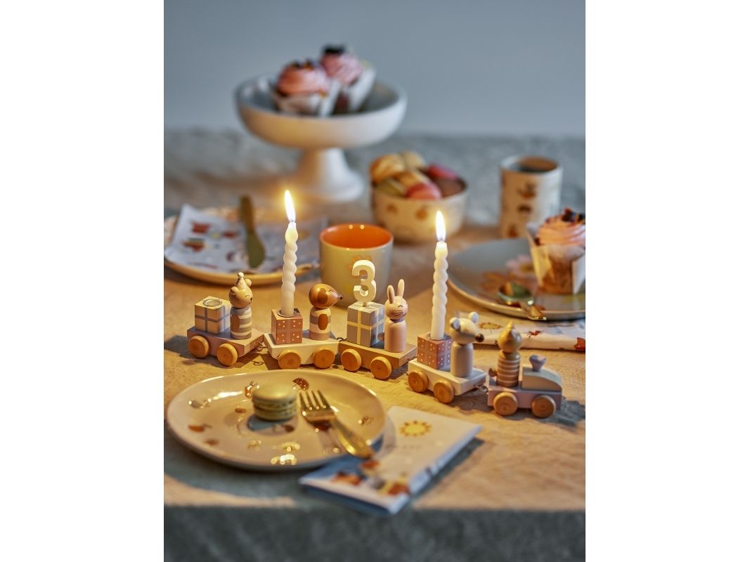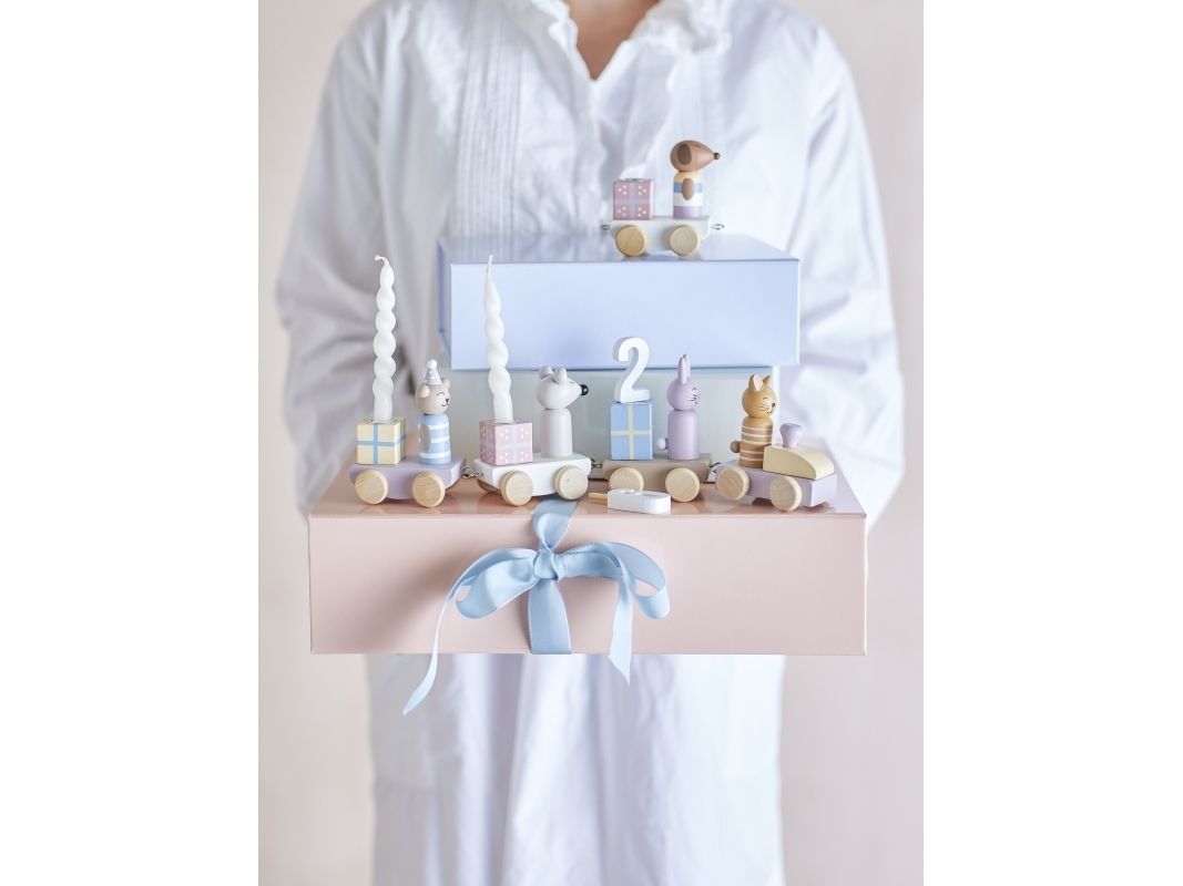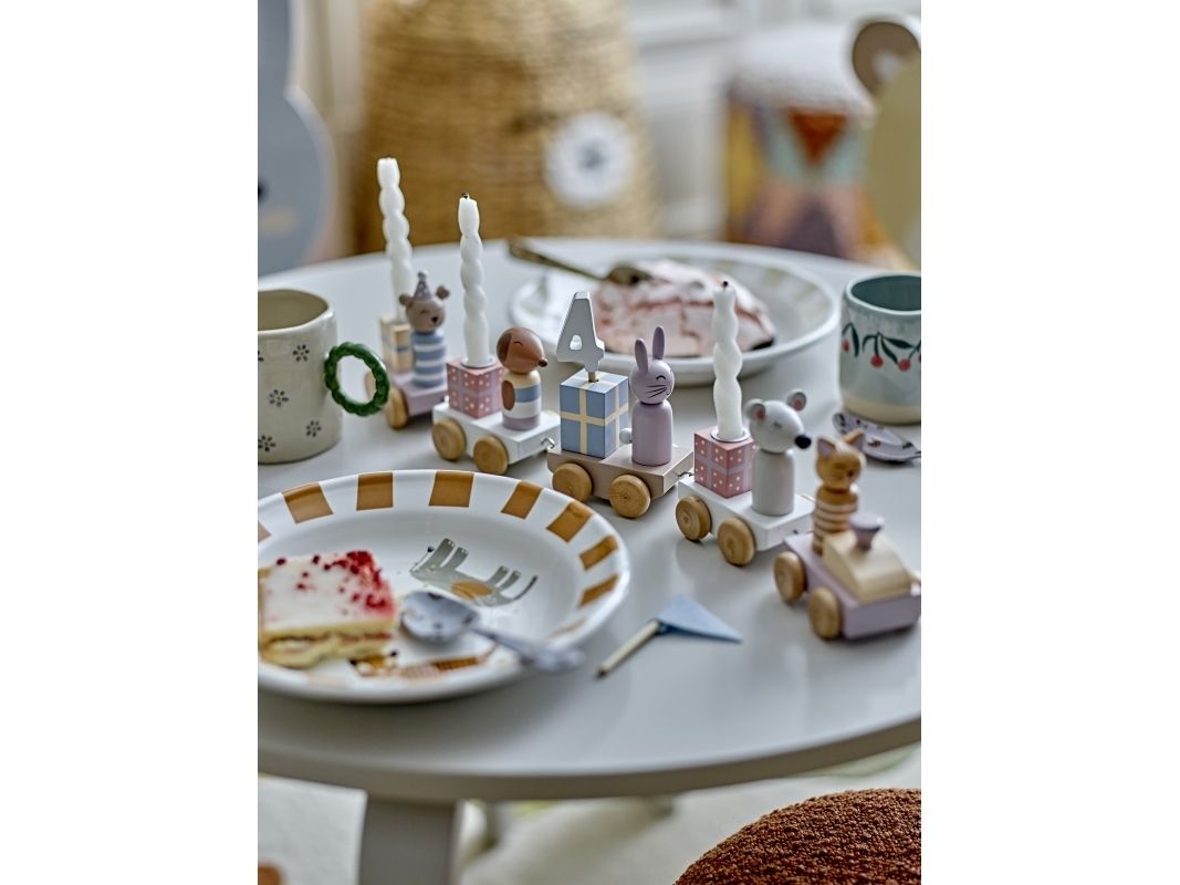 Machen Sie jede Geburtstagsfeier mit der Junaid Geburtstagsdekoration von Bloomingville MINI zu etwas ganz Besonderem. Der festliche Zug besteht aus fünf Wagen, die mit charmanten Geschenken und süßen Tieren in sanften Pastellfarben geschmückt sind. Der gemütliche Zug bringt Zahlen von 0-9 mit, bietet Platz für drei Kerzen und ist als ganzjährige Dekoration im Kinderzimmer oder Spielzimmer perfekt geeignet. Das Set kommt in einer schönen Geschenkbox und ist damit das ideale Geschenk für Babypartys oder Taufen.