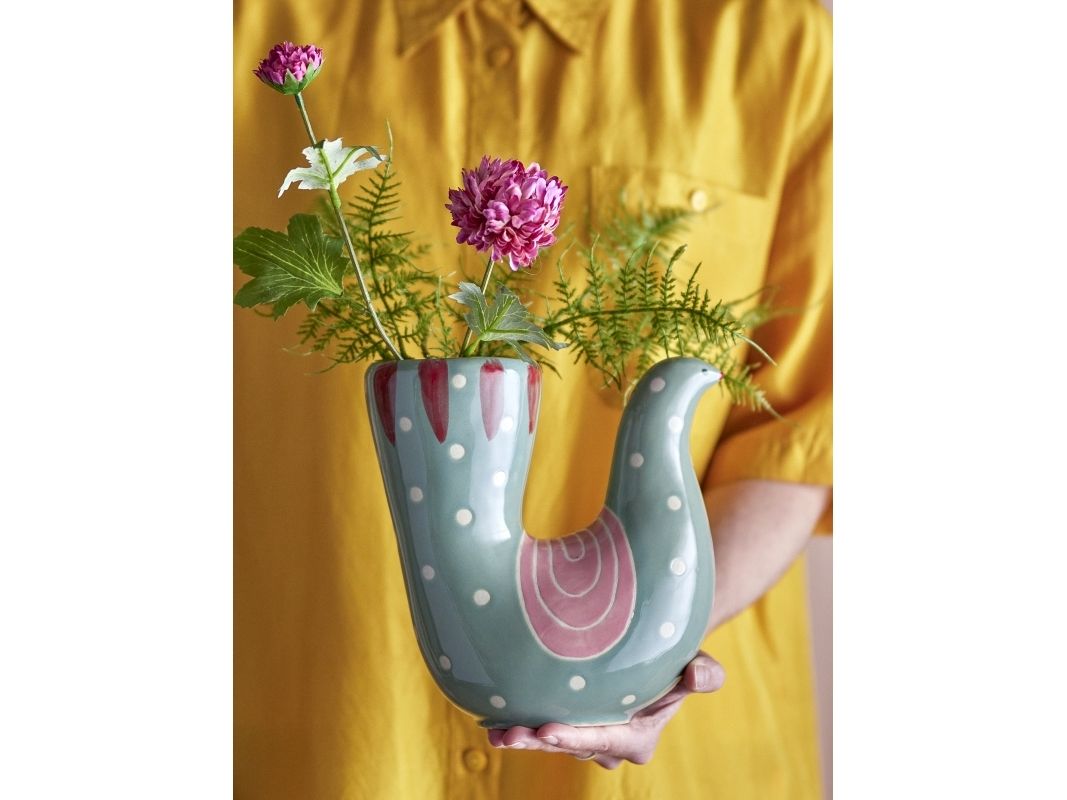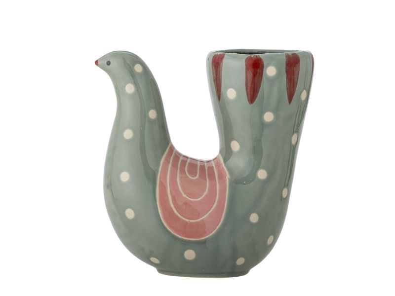 Die Trudy Vase von Bloomingville ist aus Steingut gefertigt und in Form eines Vogels gestaltet. Die Vase ist mit feinen Details in Rot-, Grün- und hellen Farbtönen handbemalt, was jede Vase einzigartig macht. Verwenden Sie die Vase, um Blumen zu präsentieren oder als dekoratives Element für sich.