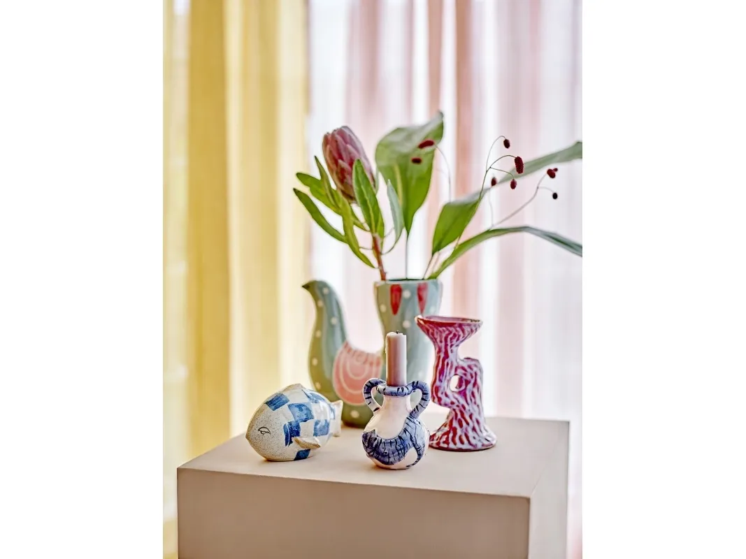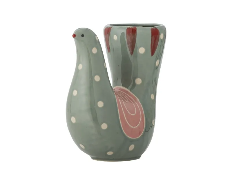 Die Trudy Vase von Bloomingville ist aus Steingut gefertigt und in Form eines Vogels gestaltet. Die Vase ist mit feinen Details in Rot-, Grün- und hellen Farbtönen handbemalt, was jede Vase einzigartig macht. Verwenden Sie die Vase, um Blumen zu präsentieren oder als dekoratives Element für sich.