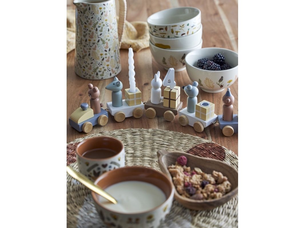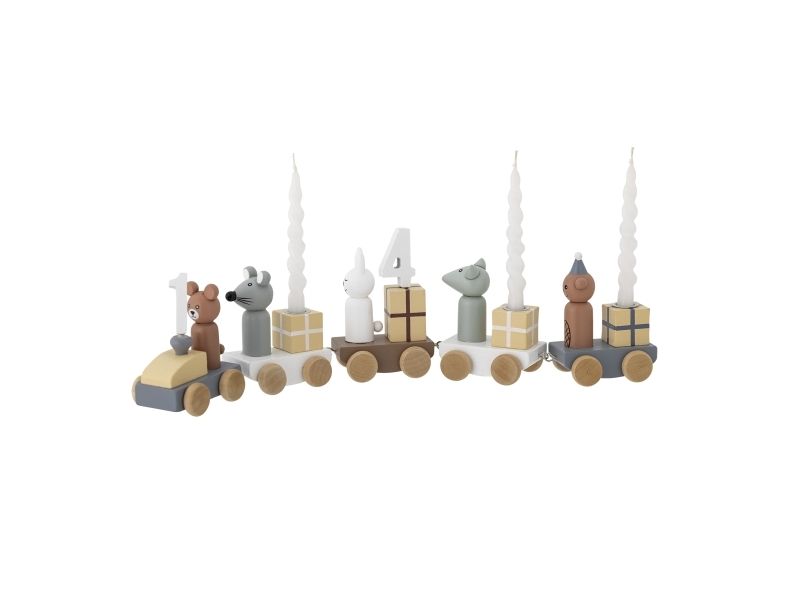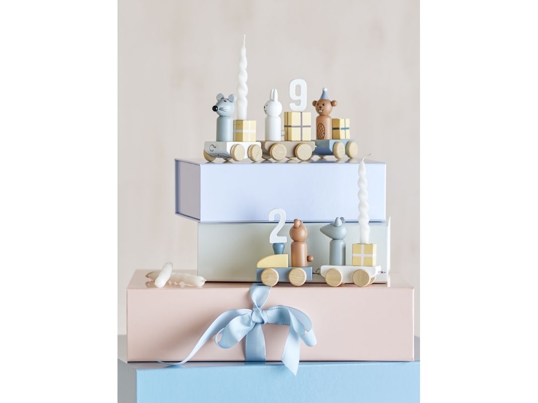 Die Junaid-Geburtstagsdekoration von Bloomingville MINI macht Geburtstagsfeiern zu etwas ganz Besonderem. Der festliche Geburtstagszug besteht aus fünf Wagen mit niedlichen Geschenken und Tieren in schönen Farben. Der charmante Zug wird mit Zahlen von 0-9 geliefert, bietet Platz für drei Kerzen und kann das ganze Jahr über als Dekoration im Kinderzimmer verwendet werden. Der Zug, der aus FSC-zertifiziertem Holz hergestellt ist, wird in einer hübschen Geschenkbox geliefert und ist das perfekte Geschenk zur Geburt oder Taufe.