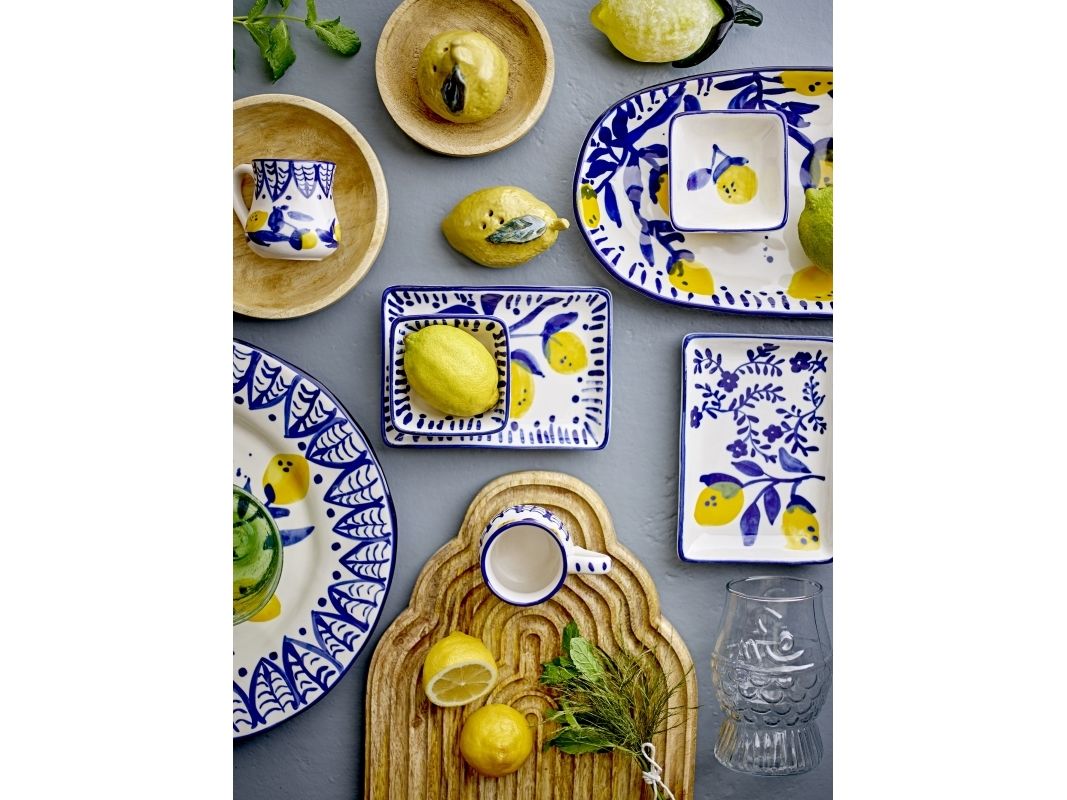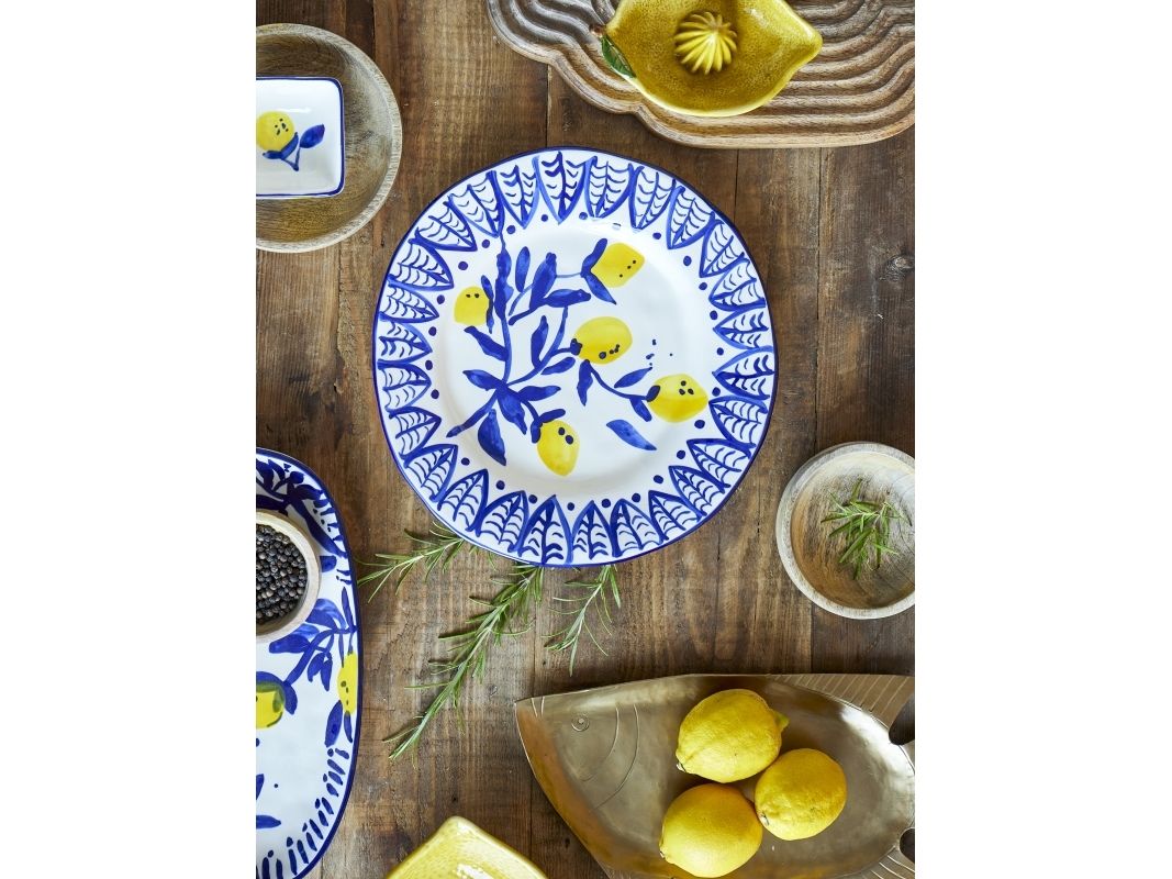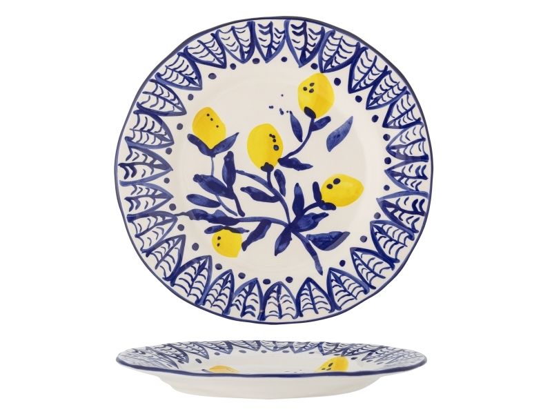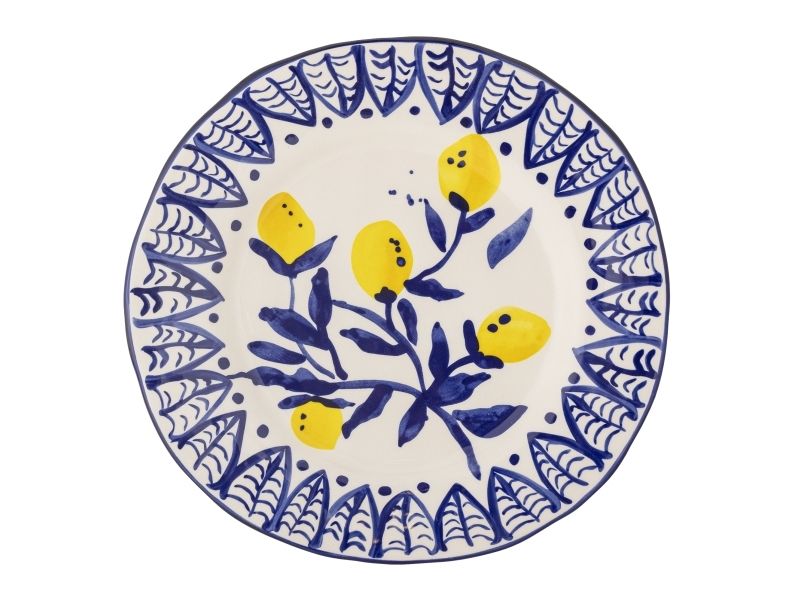 Der Maxima Teller von Creative Collection ist aus Steingut gefertigt und mit einem schönen und bunten Muster handdekoriert. Die lebhafte Dekoration ist von den warmen Gelb- und Blautönen des Mittelmeers inspiriert und bringt eine frische und einladende Atmosphäre auf Ihren Esstisch. Der Teller ist perfekt, um eine stimmungsvolle Note zu schaffen, egal ob für den Alltag oder besondere Anlässe.
