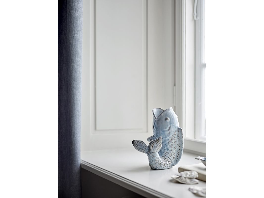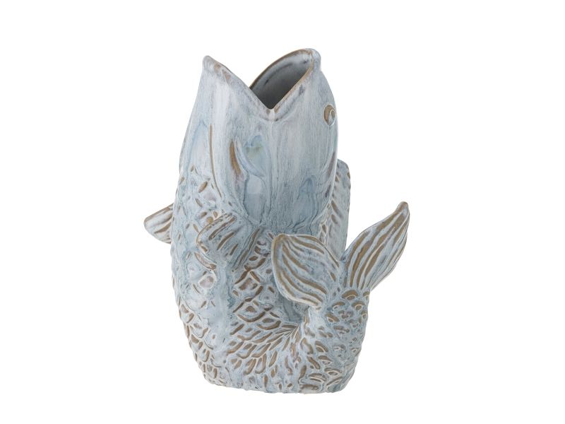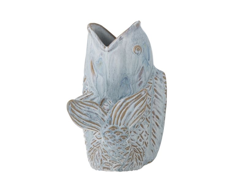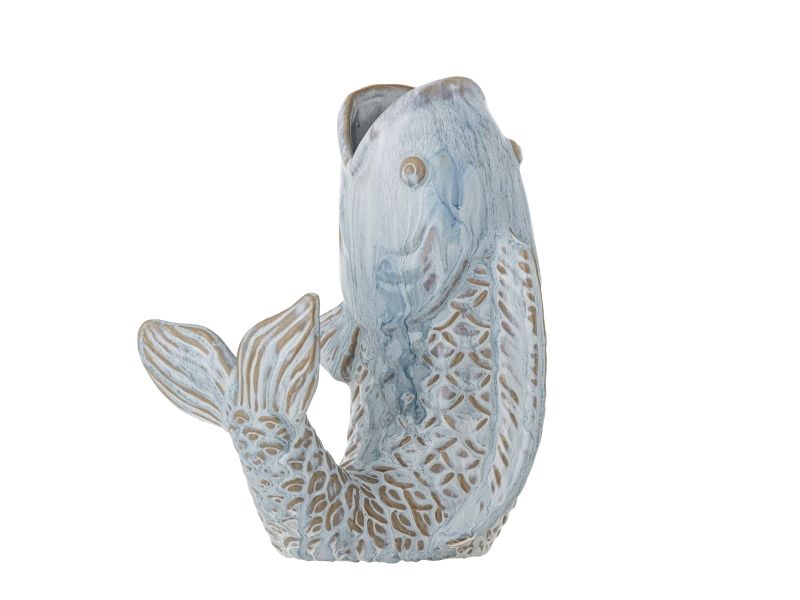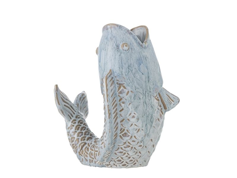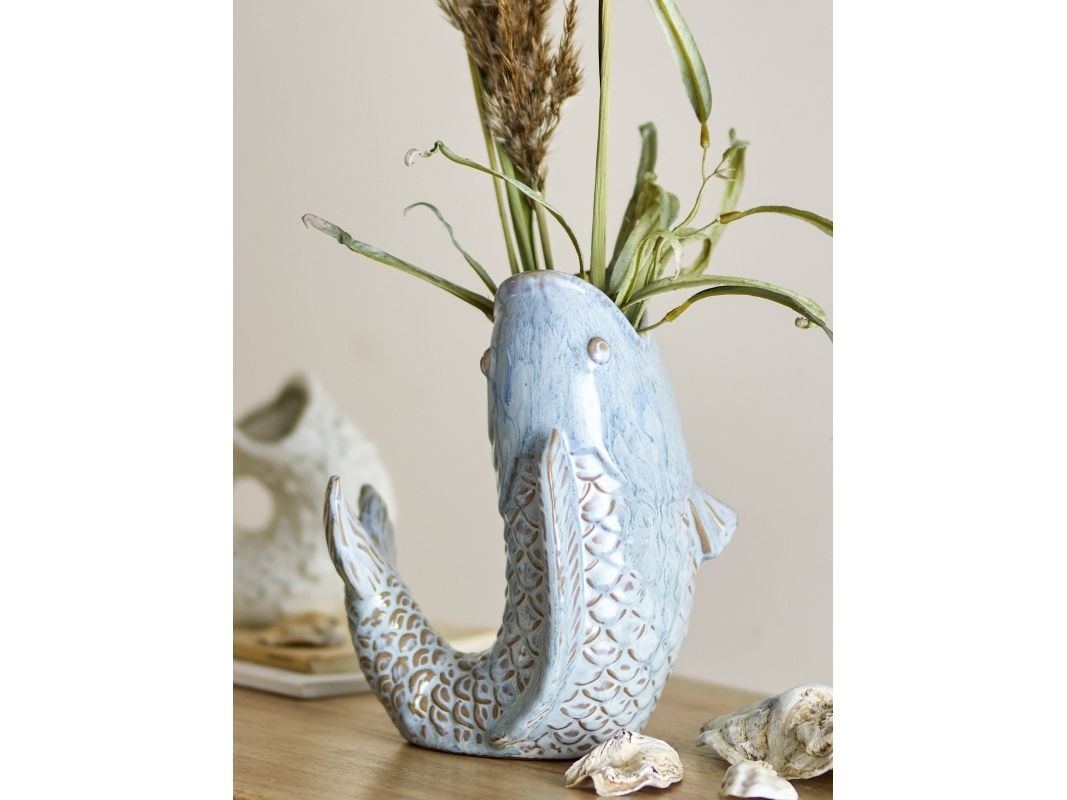 Die Hiro Vase von Creative Collection ist eine charmante Steingutvase, die in Form eines Fisches gestaltet und in einem schönen, hellblauen Farbton dekoriert ist. Ihre detaillierten Schuppen und die fließende Form verleihen der Vase einen künstlerischen Ausdruck, der jeder Einrichtung Leben einhaucht. Die hellblaue Farbe mit subtilen Nuancen fügt ein frisches und natürliches Element hinzu, perfekt, um Blumen zur Geltung zu bringen oder als Dekoration auf dem Regal zu stehen.