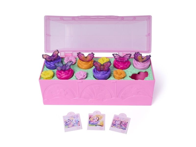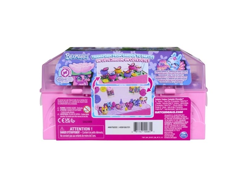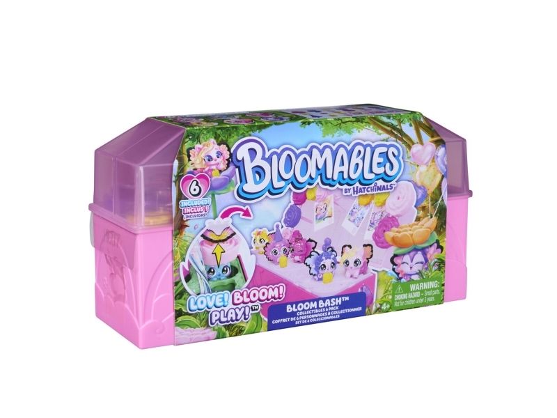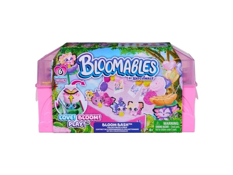 Bloom garden surprises with the Bloomables by Hatchimals Bloom Bash Collectibles 6-Pack. This fun kids toy includes 6 adorable Bloomables figures, over 15 accessories and a terrarium play space. Open the case to discover each character’s set of colourful wings, then pour water into the terrarium’s heart. Watch as the flowers magically begin to rise and bloom, revealing the characters. Pluck the smaller flowers to find accessories including a camera, party hat, cake and more mini toys. Once all of the surprises have been revealed, transform the terrarium from garden to party. Place the dancefloor from underneath the set on top, attach the wings onto each of the figures, decorate the lid with 3 Hatchi-Pics photos and flowers and play out endless adventures. Plus, bloom again and again – to reset, place the flowers back onto the characters and accessories, pour water into the heart and bloom. It’s so much fun. Those who enjoy action figures, small toys, dolls, and doll house play will love Hatchimals surprise toys for kids. A fun idea for birthday gifts for girls and boys or kids gifts for any occasion. Party with Bloomables by Hatchimals in the Bloom Bash Collectibles 6-Pack.