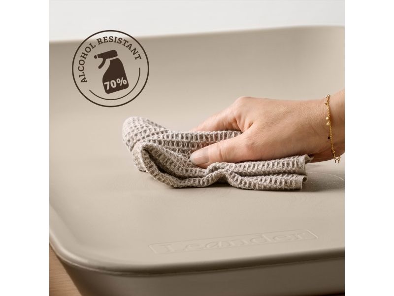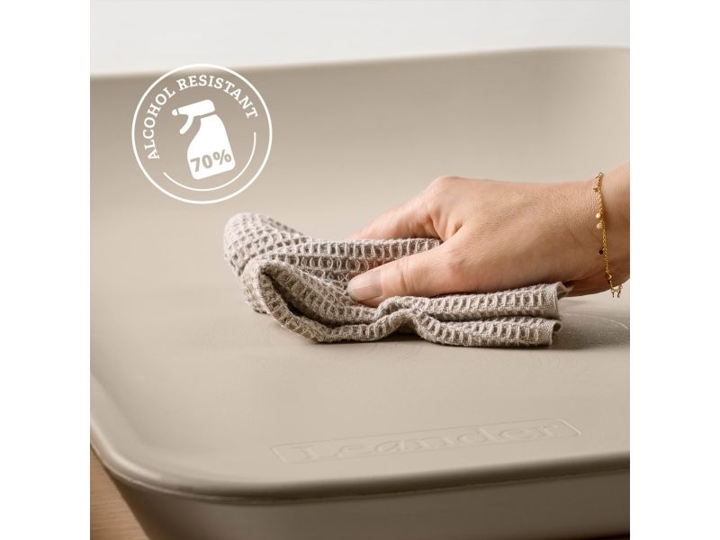 Rengøres med en tekstil klud med vand og mild sæbe og desinficeres med en tekstil klud med 70% sprit