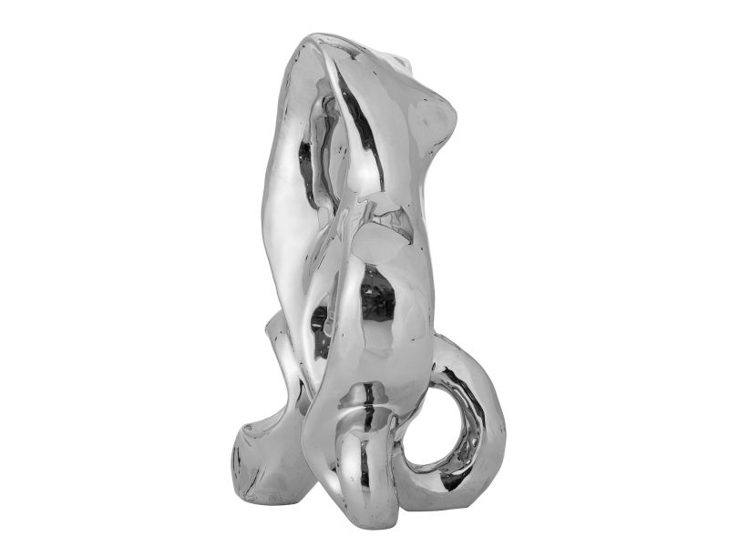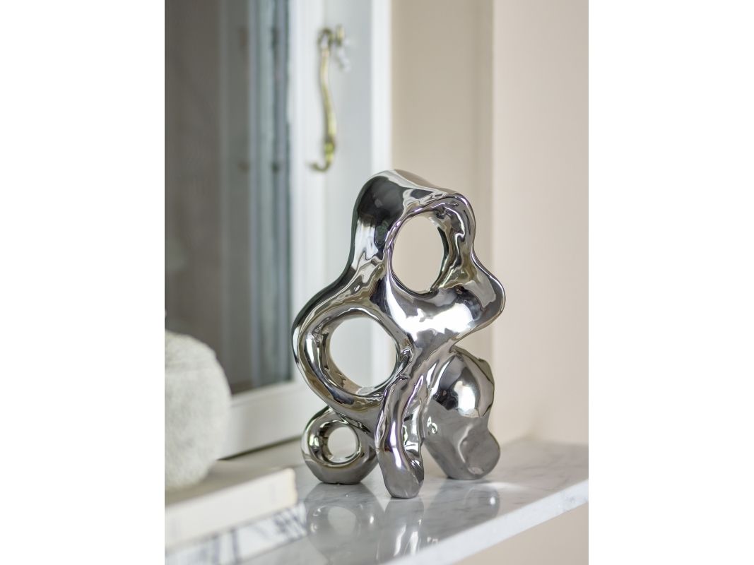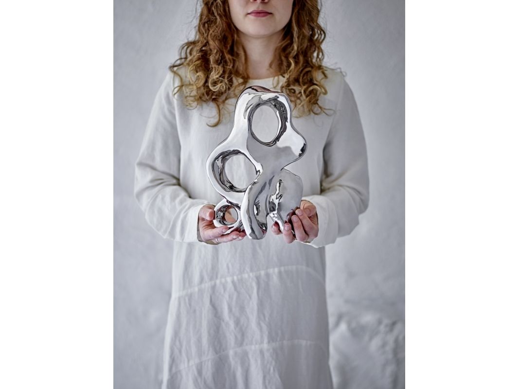 Die Deko Vinini von Bloomingville besteht aus Steingut mit einer silberfarbenen Oberfläche, die das Licht einfängt und einen dekorativen und skulpturalen Look erzeugt. Ein schönes Detail für ein Regal oder eine Fensterbank.