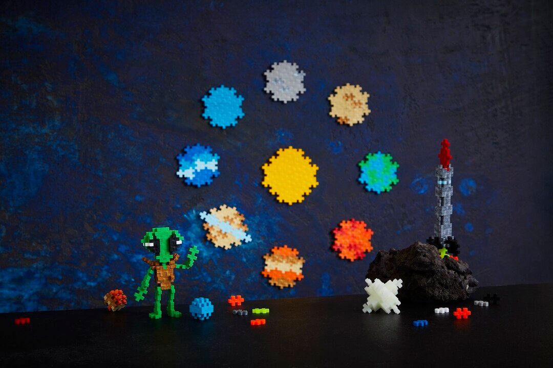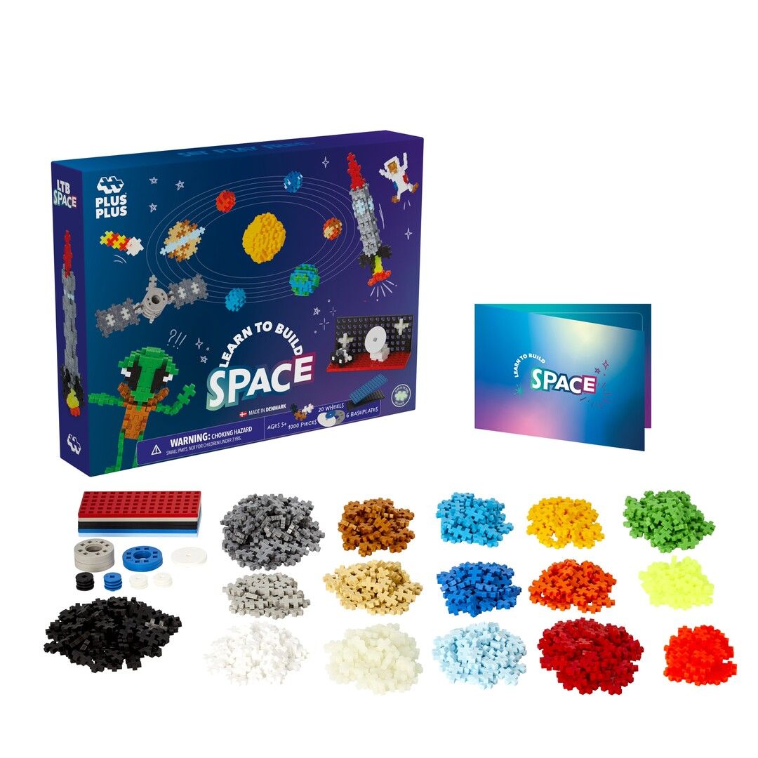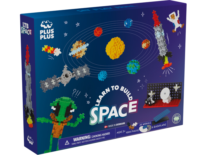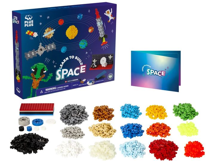 Explore space with Plus-Plus! This Space Superset lets children build an entire universe, from simple 2D shapes to advanced 3D models like rockets, planets, astronauts, aliens, and more. With 1,000 pieces, baseplates, wheels, and hubs, it offers endless creative possibilities while developing fine motor skills and problem-solving. Perfect for hours of fun at home, school, or with friends — the universe is yours!