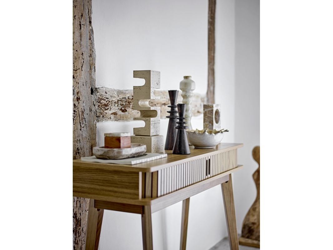 Die Hallam Deko von Bloomingville ist eine grafische Skulptur aus Polyresin mit einer Oberfläche, die an Naturstein erinnert. Die schöne Dekoration verleiht dem Interieur einen modernen und künstlerischen Ausdruck, wo auch immer sie platziert wird.