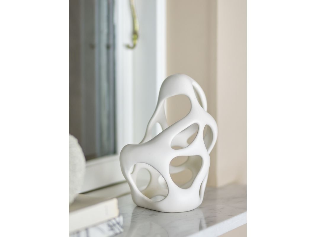 Die Dekoration Chanet von Bloomingville besteht aus Polyresin mit einer matten Oberfläche in feinem Weiß. Die elegante Form wirkt leicht und harmonisch, perfekt als Dekoration auf Regalen oder Tischen.