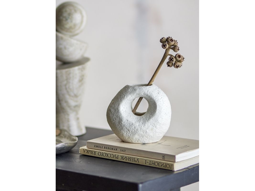 Die Caia Vase von Bloomingville hat ein organisches Design mit abgerundeten Formen. Die strukturierte Oberfläche verleiht der Einrichtung eine rohe, aber stilvolle Ästhetik. Die Vase funktioniert wunderbar allein als dekoratives Element oder mit ein paar einfachen Blumenstielen. Ideal für die Platzierung auf einem Regal, Tisch oder auf der Fensterbank, wo sie dem Raum Charakter verleiht.