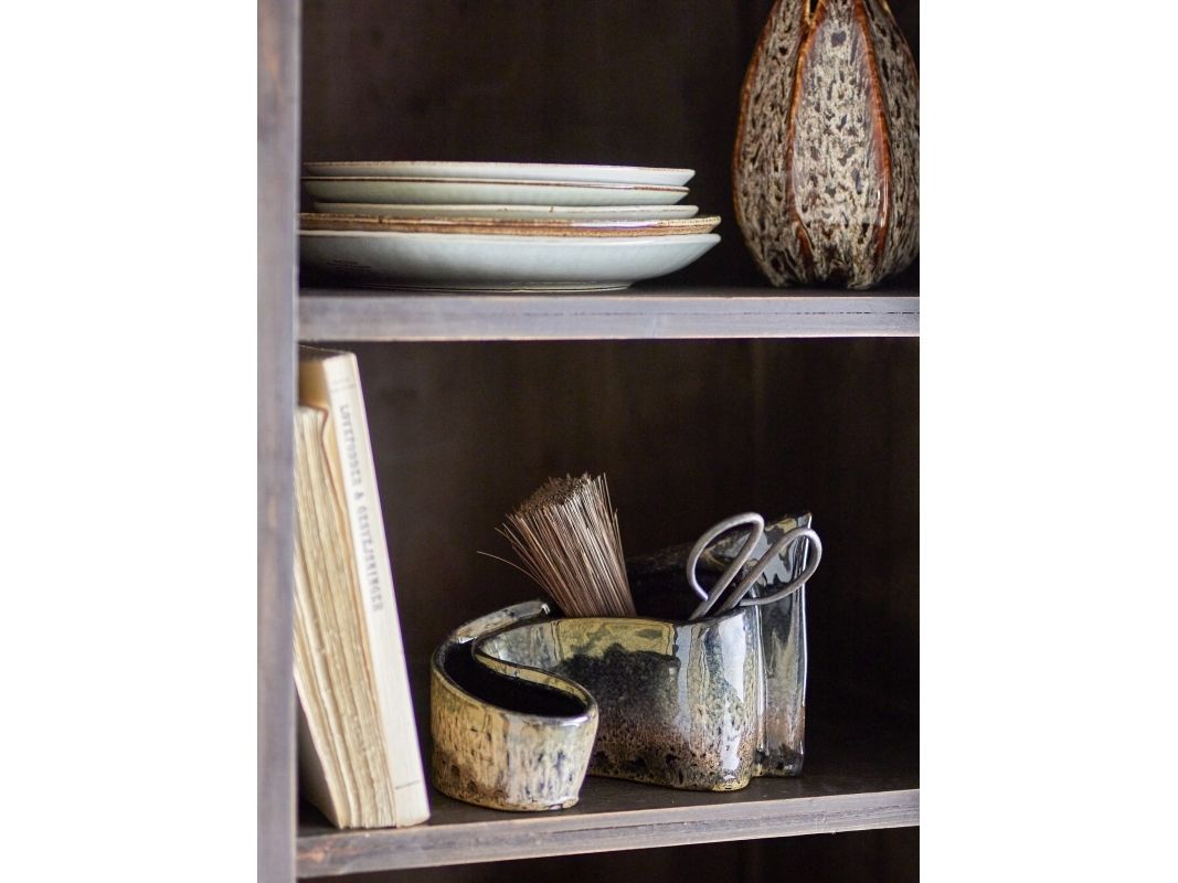 Die Phil Deko von Creative Collection ist ein praktisches Kunstwerk. Verwenden Sie es sowohl zur Dekoration als auch zur Aufbewahrung kleiner Gegenstände wie Stifte auf dem Schreibtisch und Make-up-Pinsel im Badezimmer - nur die Fantasie setzt Grenzen. Es verfügt über eine schöne reaktive Glasur in Blau- und Brauntönen und eine gewellte, natürliche Form. Aufgrund der Natur der Glasur können Farbabweichungen auftreten, wodurch jeder Stil einzigartig wird."