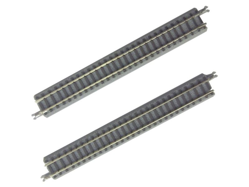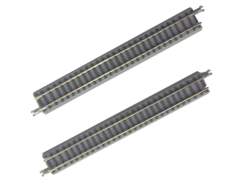 Z Rokuhan-Gleis (mit Schotter )Das neue Rokuhan-Gleis ist superattraktiv, robust, äußerst stabil und einfach zu verlegen. Der Schotter besteht aus einem elastischen Kunststoff, die Schienen sind aus Neusilber. Die einzelnen Schienen lassen sich mit speziellen Schienenstößen einfach und sicher miteinander verlegen. Die Metallschienenbügel werden dabei von Kunststoffklammern an der Schienenunterseite gehalten, die mit einem hör- und spürbaren Klick einrasten. Neues Schienensystem Laufende Erweiterung