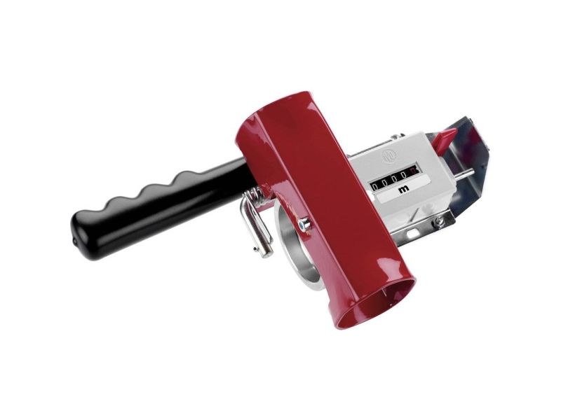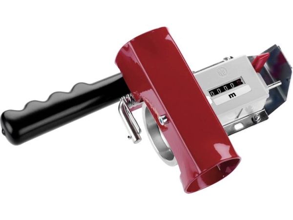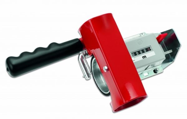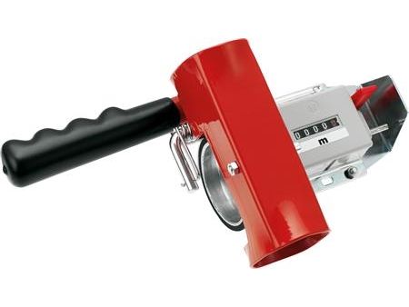 Handmessgerät für Kabellängen - CIMCOAutomatische Einstellung der Kabelmaße - Deutsches Qualitätszählwerk mit einer Messgenauigkeit von ±1%, eichfähig mit PTB - Rückstellung mit Reset-Messerschalter - Rillenmessrad aus Aluminium, Gehäuse pulverbeschichtet und verzinkt - Mit abriebfestem Griff für den mobilen Einsatz - Mit Haltegriff für den stationären Einsatz in Verbindung mit CIMCO-Leitungsringtrommeln, allen CIMCO-TROMMELFIX-Trommelhilfen und dem CIMCO-Verbindungsständer. Messgerät zur schnellen und präzisen Ermittlung von Kabellängen.