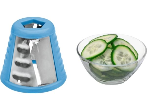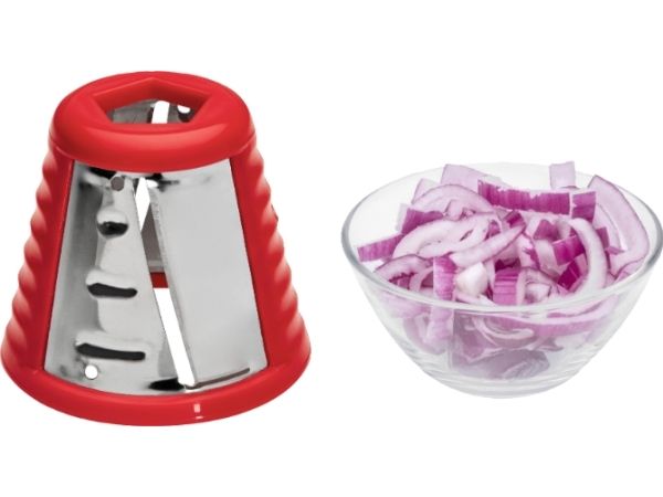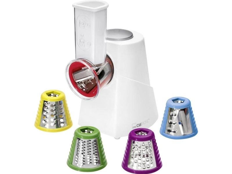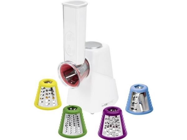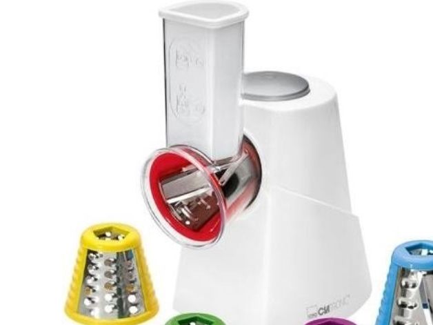 Elektrisches Schnitzelwerk „Multi Express“ Hochwertige, große und wechselbare Trommeleinsätze aus Edelstahl zum schnellen und einfachen Schneiden, Raspeln oder Reiben Einfache Handhabung 5 Funktionen: schneiden (fein/grob) von z. B. Zwiebeln, Gurken raspeln (fein/grob) von z. B. Möhren, Radieschen reiben von z. B. Parmesan, Nüssen, Kartoffeln Kraftvoller 150 Watt Motor 1 Geschwindigkeitsstufe Große Einfüllöffnung (ca. Ø 60 mm) Weiter Auswurf (ca. Ø 80 mm) Zubehör: 2 Schneideinsätze (fein/grob), 2 Raspeleinsätze (fein/grob), 1 Reibeinsatz Spannungsversorgung: 220-240 V, 50/60 Hz Leistungsaufnahme: 150 Watt