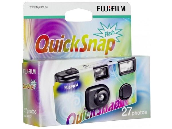 The QuickSnap Flash 400 camera features a compact body and comes pre-loaded with Fujicolor 400 speed film. This one-time-use camera produces very sharp pictures and features a built in flash with a 10 ft flash range. The QuickSnap Flash 400 camera is fun and easy to use, and is great for taking pictures indoors or outdoors. The continuous flash switch makes it easier to take multiple shots, letting you concentrate entirely on the pictures!