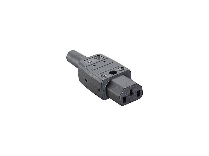 - For cables up to 3G 1.00 mm², thermoplastic version with earthing contact C13 for cable mounting - Screw terminal, kink protection nozzle and strain relief