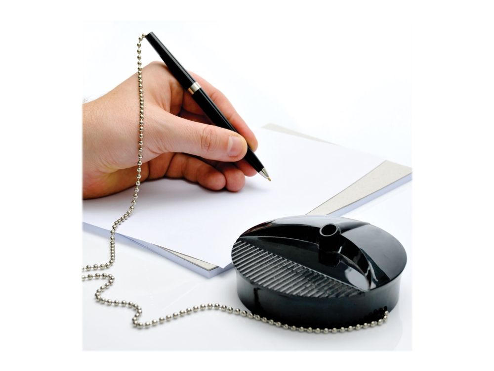 Discover the practicality and durability of the Fellowes countertop ballpoint pen, a must-have for any high-traffic area. This pen is designed to withstand continuous use, thanks to its refillable feature and smooth writing capability. The anti-wander chrome chain (52 cm) and black plastic pen stand ensure the pen is always secure and within reach. Ideal for settings such as banks, reception areas, and service desks, this pen combines functionality with convenience, making it a reliable choice for daily operations. Its refillable nature not only offers a seamless writing experience but also aligns with sustainable practices by minimizing waste. Choose the Fellowes countertop ballpoint pen for a dependable and eco-friendly writing solution.