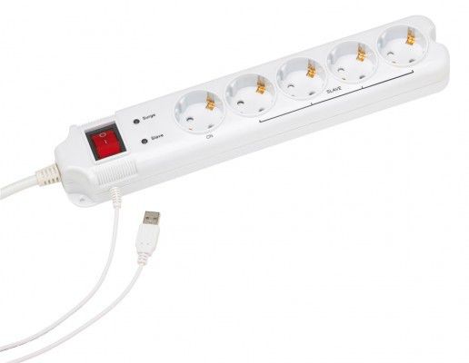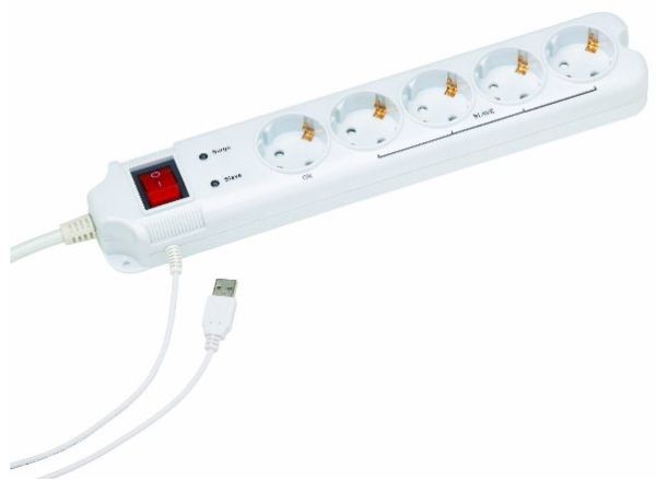 Die 4 Slave-Steckdosen werden automatisch einoder ausgeschaltet, sobald der USB-Port eines mit der Master-Steckdose verbundenen PCs / Gerätes ein- oder ausgeschaltet wird. Ideal zum Schutz Ihrer hochwertigen und empfindlichen Geräte zu Hause und im Büro. Durch den beleuchteten Sicherheitsschalter lässt sich kinderleicht viel Geld sparen. Mit einem Klick nehmen Sie alle angeschlossenen Geräte vom Netz - energiesparend und umweltschonend!