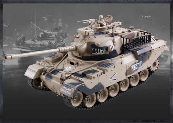 Air Series schießt mit Plastikkugeln, Vorsicht, nicht empfohlen für Personen unter 14 Jahren Airsoft Fighting Car mit Licht und Sound! Der Turm kann um 330 Grad nach links und rechts gedreht werden, das Rohr kann um 30 Grad nach oben und unten bewegt werden Kann über 10 Meter weit abgefeuert werden, durch Abfeuertöne und Simulation des Rückstoßes Volle Funktionskontrolle: Vorwärts- und Rückwärtsfahrt, Links- und Rechtsdrehung, 360-Grad-Drehung Lustig und fesselnd! Behältergröße: 47 x 18,5 x 19 cm Verpackungsgröße: 54,6 x 22,3 x 31,1 cm Erforderliche Batterie für die Fernbedienung: 3 x AA (nicht enthalten) Batterie im Tank: 1 x 9.6V Ni-CD 700mAh Batterie (enthalten) Kann einen anderen Panzer innerhalb von etwa 12 Metern treffen Kann aus einer Entfernung von ca. 50 Metern ferngesteuert werden Frequenz 27MHz Aufladezeit: 4 Stunden Spielzeit: 20 Minuten.
