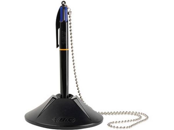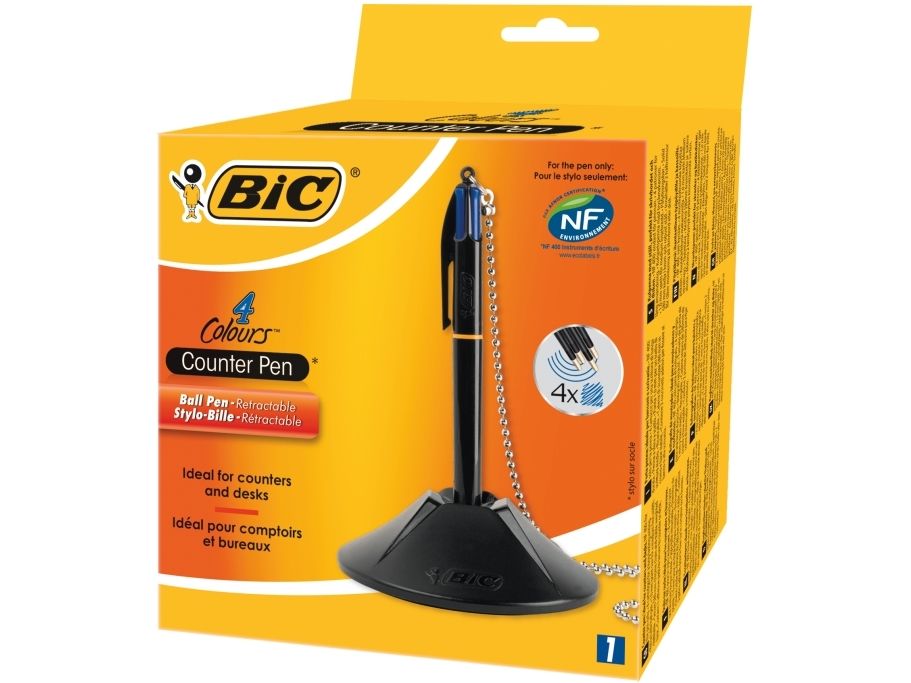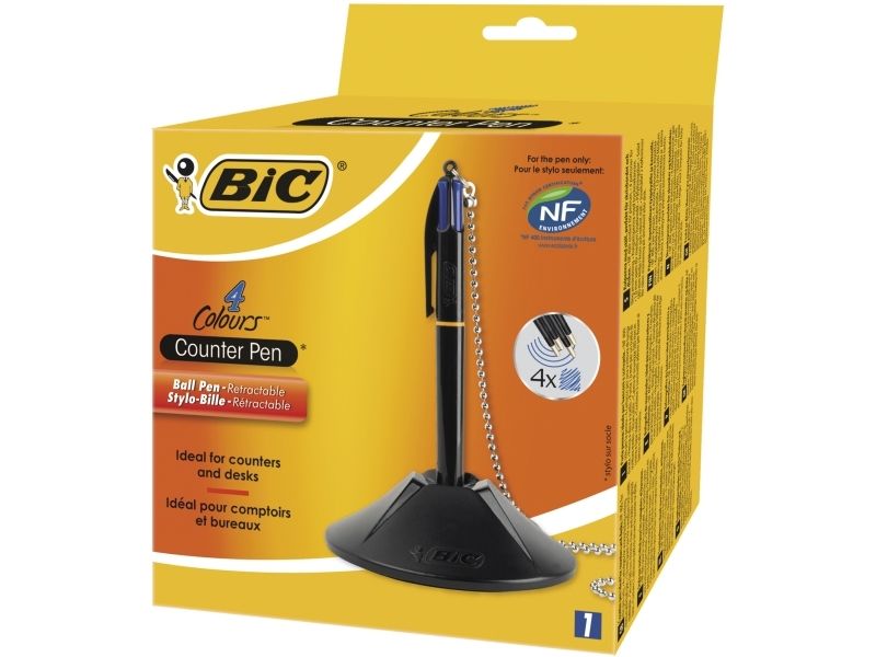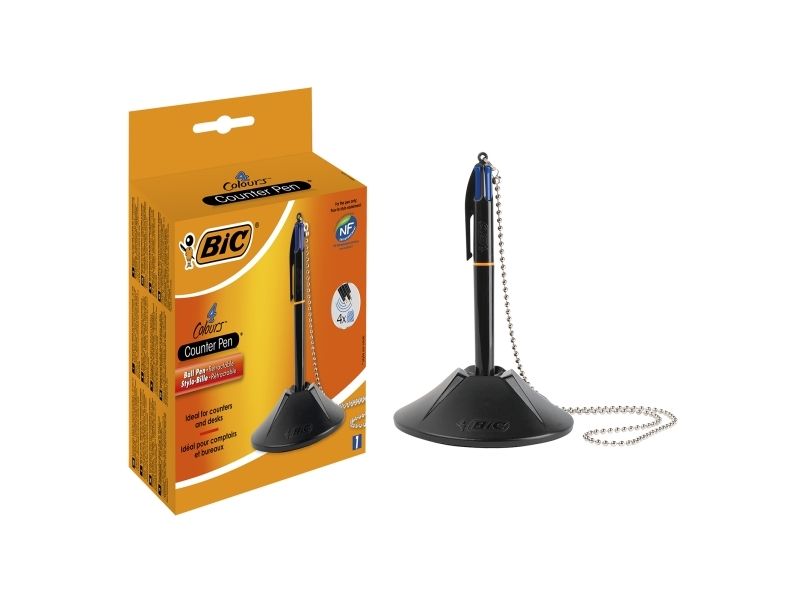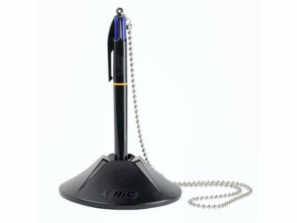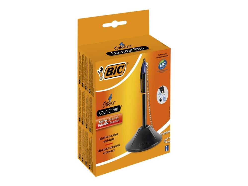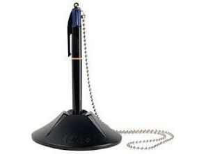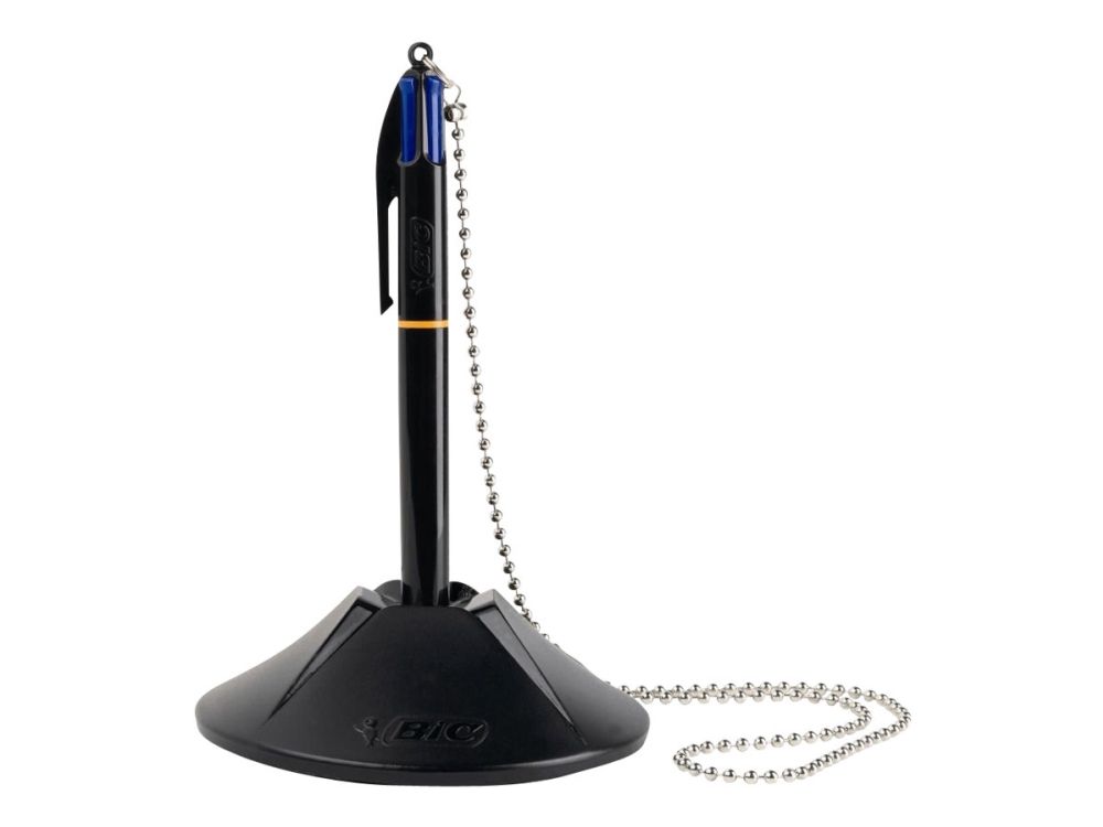 BIC® kuglepenholder Counder Pen 10,1 x 3,2 x 10,1 cm (B x H x D) 0,4 mm blå inkl. 4 skridsikre knopper sortGennemsnitlig skrivelængde ca. 8 km. Foden er forsynet med dobbeltsidet klæbepude og 4 skridsikre dupper forhindrer, at den glider.