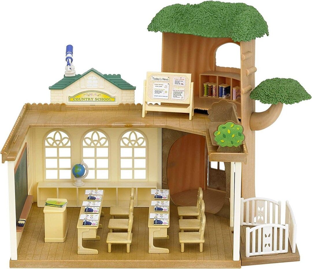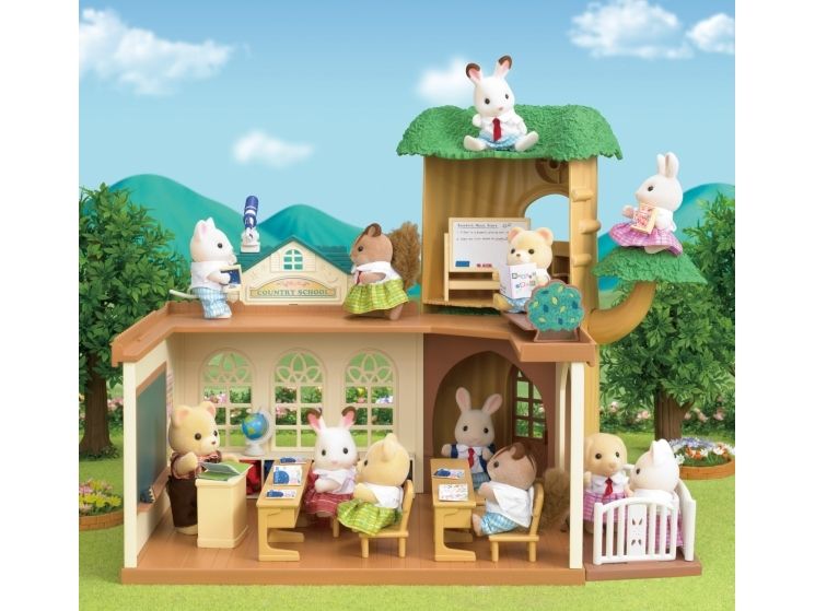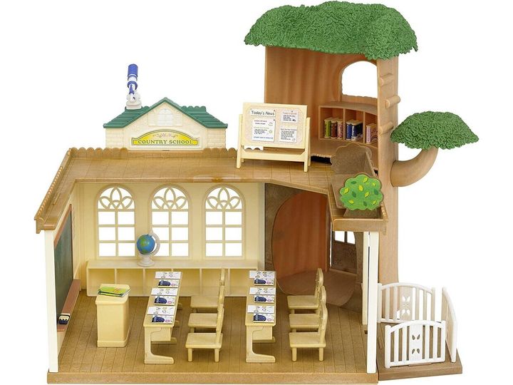 The Country Tree School is such a fun school! Whilst there is a classroom which comes furnished for lessons for up to 6 Sylvanian children, complete with 6 seats and desks, the teacher's desk and whiteboard, there is also a tree to climb in break time! A balcony overlooking the beautiful Sylvanian scenery provides the perfect platform for pupils to get inspired for their art lessons or spot some wildlife. For any little star-gazers, there is a telescope fitted to the roof which can also be connected to the tree for a better view. Finally, there is also a bench for your little Sylvanians to relax after many hours practising their sums and ABCs.
