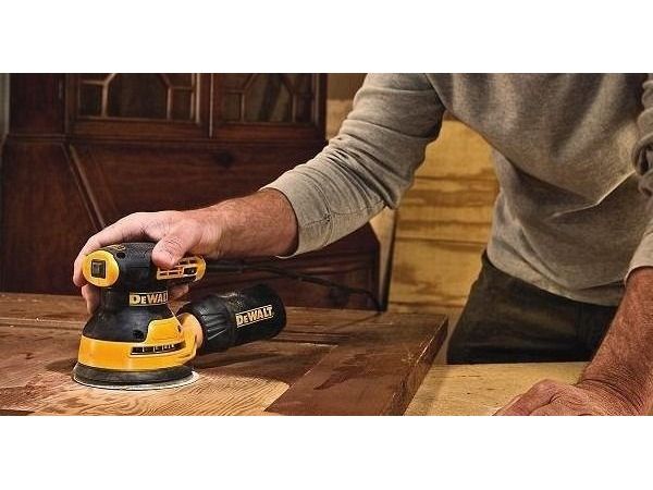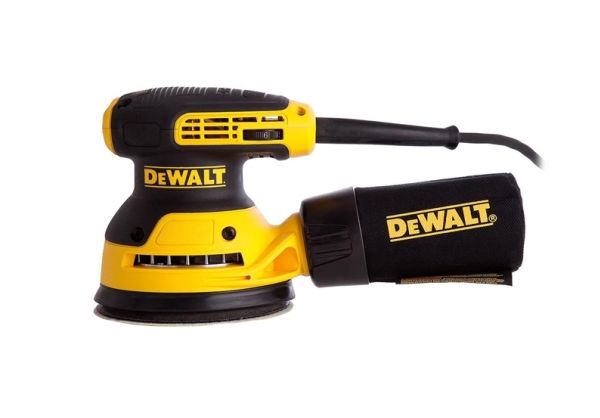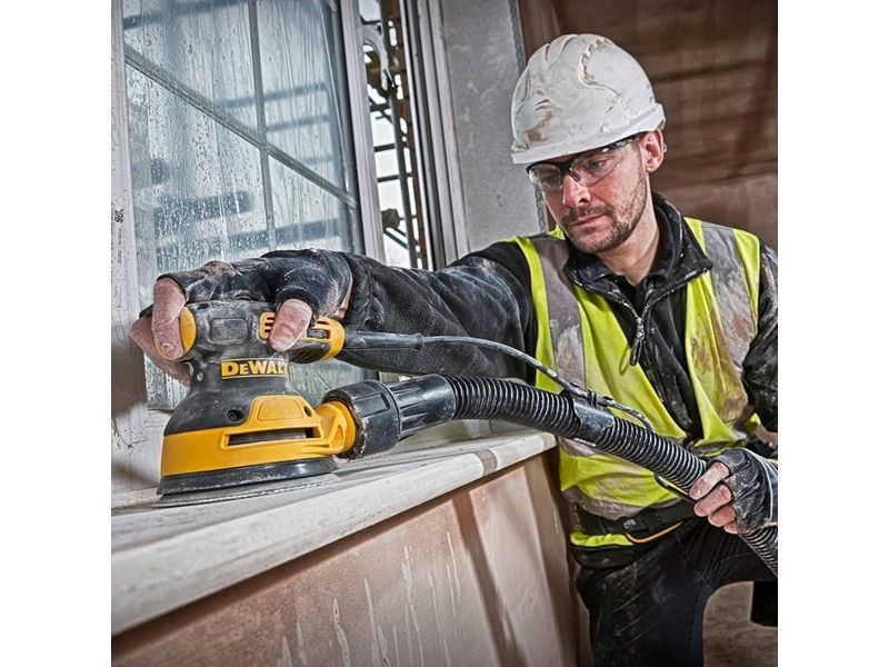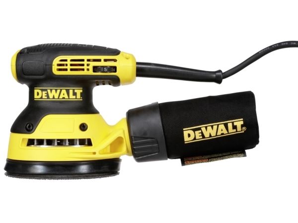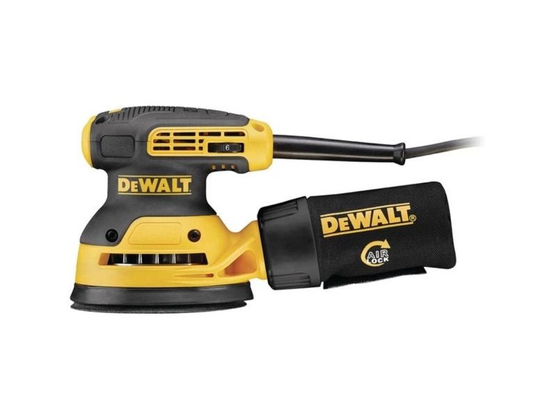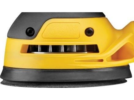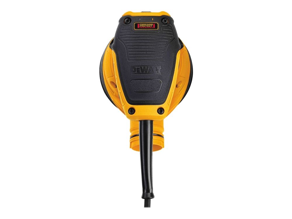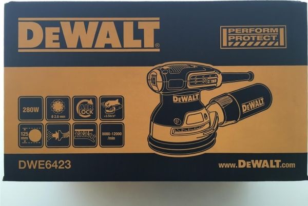 The DWE6423 5" Variable Speed Random Orbit Sander Kit with hook & loop pad has a 3 amp motor that delivers between 8,000 to 12,000 OPM. The separate counterweight reduces vibration and along with the rubber overmold grip provides comfortable sanding. A shorter design allows users to get closer to the work surface and the one-handed locking dust bag attaches securely to the sander to aid in dust collection.
