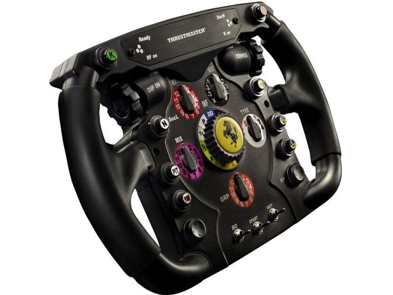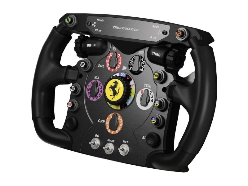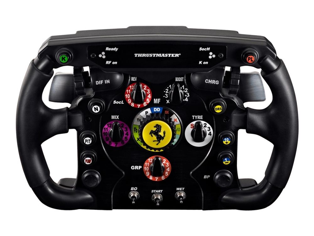 - Replik des Ferrari F1 2011 Rennlenkers, des “ Ferrari 150th Italia ”: - Maßstabsgetreue Replik mit gebürsteter Metalloberfläche - Gummierter Lenker mit realistischem und komfortablen Griff - Echte sequentielle F1 “Push & Pull” Metall-Gangschalthebel - 2 Drehknöpfe (um Autoeinstellungen direkt während des Rennens tätigen zu können), 3 Metallschalter, 8 professionelle Qualitäts-Actionbuttons und 2 D-Pads mit entsprechend realistischem Druck - Zwei verfügbare Spielmodi: - “Normal” Modus, PC und PS3™ kompatibel (mit 13 Actionbuttons und 3 D-Pads) - “Advanced” Modus, PC kompatibel (mit 25 Actionbuttons und 1 D-Pad) - Abnehmbarer Rennlenker mit dem “Thrustmaster Quick Release” System (ermöglicht zukünftige Aktualisierungen)