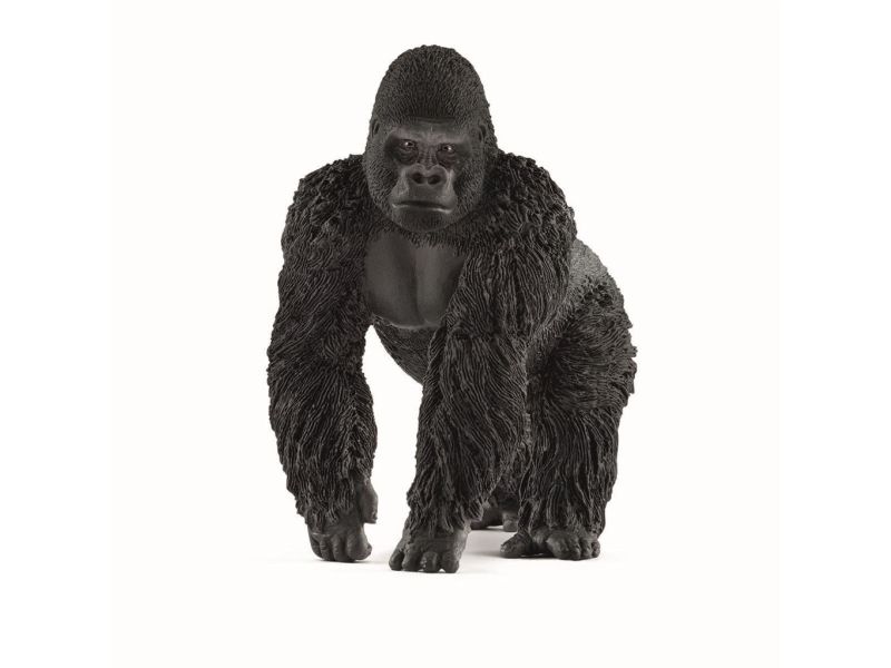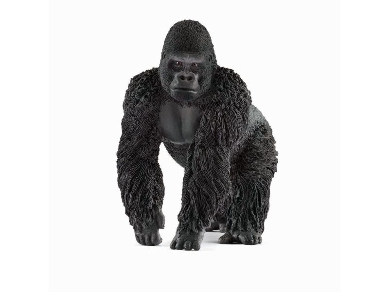 Die Schleich Figuren sind alle detailgetreu modelliert, liebevoll handbemalt und stehen für pädagogisch wertvolles Spielen. Männliche Gorillas trommeln häufig mit den Fäusten auf ihre Brust. Damit wollen sie zeigen, wer der stärkste in der Gruppe ist. Das Klopfen kann aber auch eine Art der Begrüßung sein. Gorillas laufen nicht auf ihren Handinnenflächen, sondern auf ihren Handknöcheln. Deshalb nennt man sie auch Knöchelgänger.