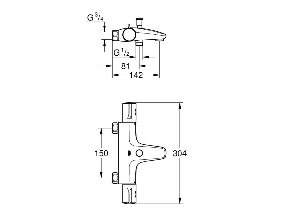Grohtherm 800 für Wanne+Dusche - Wandmontage. Duschabgang unten 1/2 34568000