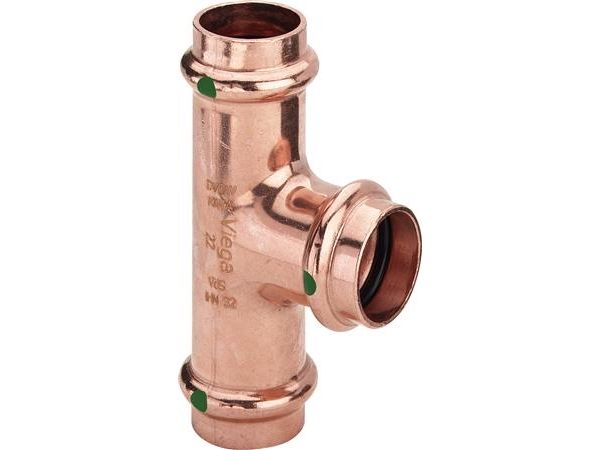 Profipress mit SC ConturPress Fittings aus Kupfer für harte und weiche Kupferrohre, hergestellt nach der Norm EN 1057, ohne Stützhülse, jedoch müssen weiche Kupferrohre vor dem Verpressen kalibriert werden.