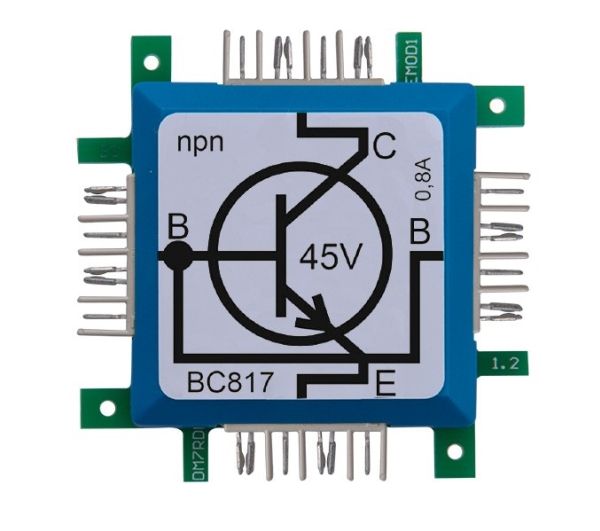 Beim Transistor wird der Stromfluss zwischen Emitter und Kollektor durch einen kleineren Stromfluss zwischen Emitter und Basis gesteuert. Bei der npn Version ist die Basis gegenüber dem Emitter positiv anzusteuern.