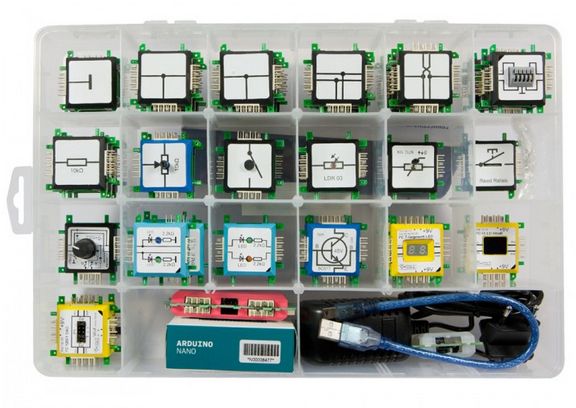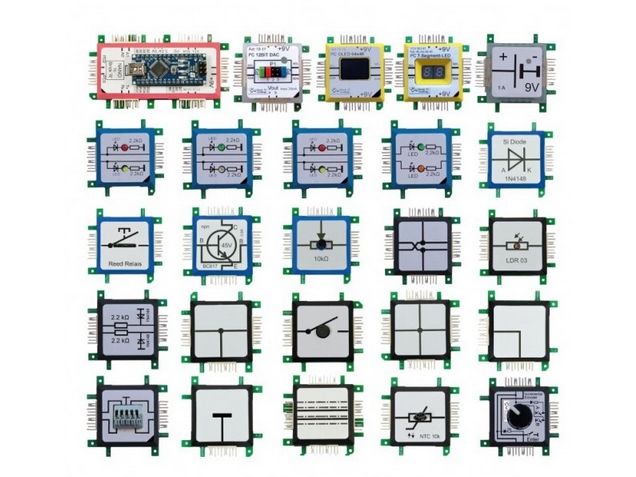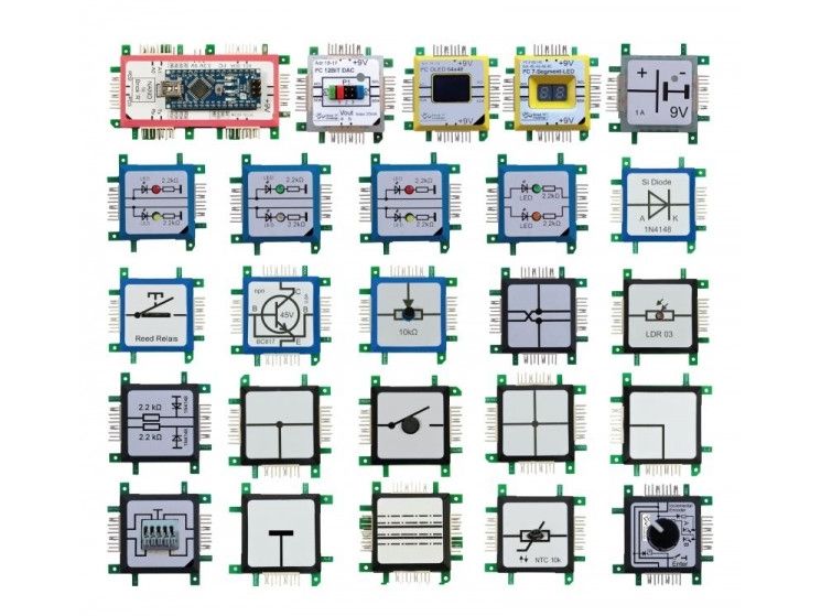 Das Arduino Set ermöglicht Interaktion und bietet so eine völlig neue Funktionalität für die Bricks. Mit dem Arduino Nano Brick lassen sich komplexe Schaltungen schnell und unkompliziert programmieren und realisieren. Neben mehreren LED-Bricks enthält das Set auch unterschiedliche Display-Typen und ermöglicht so eine große Flexibilität bei der Entwicklung eigener Lösungen.